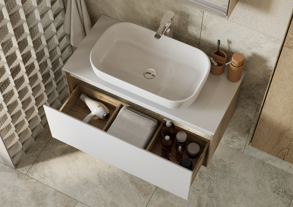 Тумба под накладную раковину Aquaton Либерти 90 дуб эльвезия белый глянец 1A279901LYC70