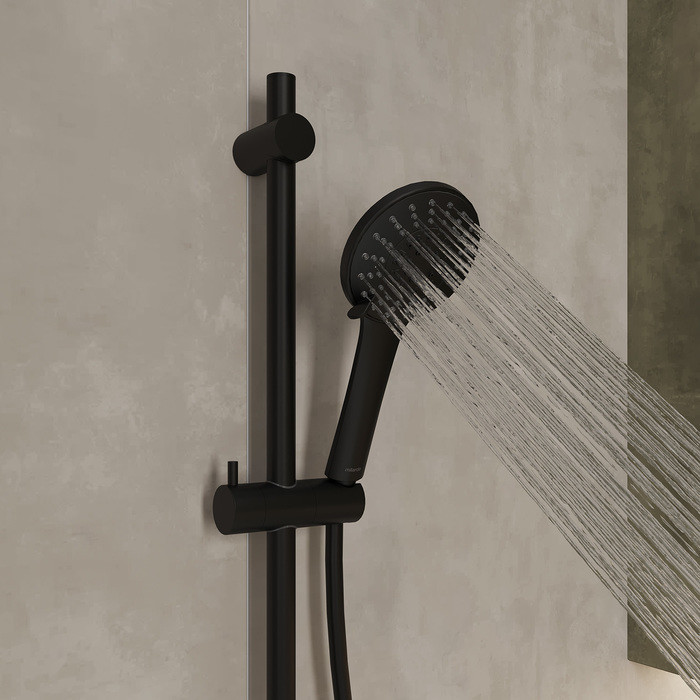 Лейка для душа Ideal Spa станет оптимальным решением для современных интерьеров. Для комфортного принятия душа у нее увеличенный (110 мм) диаметр и большое разнообразие режимов работы: Spray, Massage, Spray&Massage, Strong spray и Spray&Strong spray. Режимами удобно управлять поворотным рычажком на лицевом диске. Лаконичная лейка подойдет к большинству моделей округлых стоек и держателей, например из ассортимента душевых аксессуаров Milardo®. Трендовый черный цвет станет ярким акцентом в пространстве ванной.●Матовое цветное покрытие защищает лейку Milardo® от появления царапин и устойчиво к выцветанию (при должном уходе).●Форсунки выполнены из мягкого полимера, препятствующего оседанию извести внутри корпуса лейки. Для очистки форсунок от накопившегося загрязнения достаточно провести пальцем по их поверхности.●Гарантия на душевые лейки Milardo® – 1 год. (с) Авторский текст, декабрь 2023 г