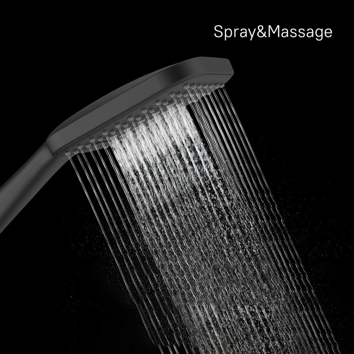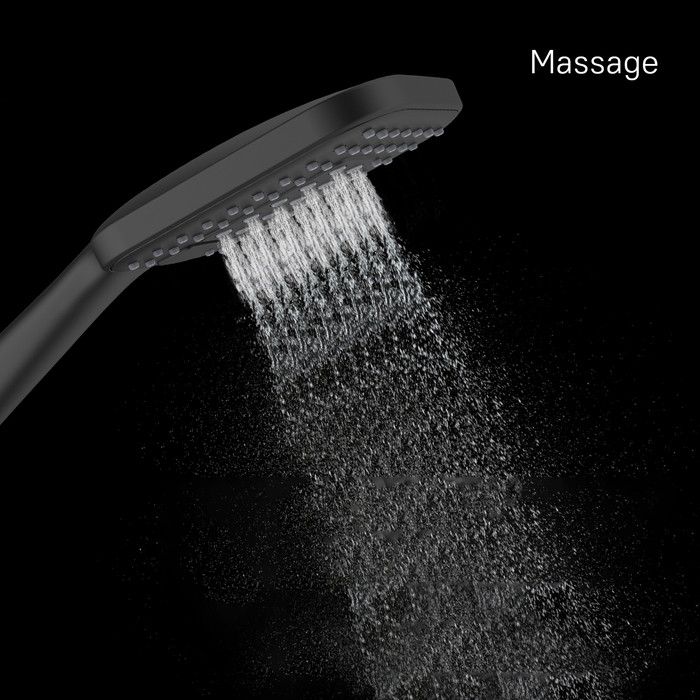 Прямоугольная лейка для душа Ideal Spa станет оптимальным решением для современных интерьеров. Лейка лаконичной формы будет эффектно сочетаться с квадратной сантехникой. Трендовый черный цвет станет ярким акцентом в пространстве ванной. Для комфортного принятия душа в лейке предусмотрено 3 режима работы: Spray, Massage и Spray&Massage. Ими удобно управлять выступающей кнопкой на лицевом диске.