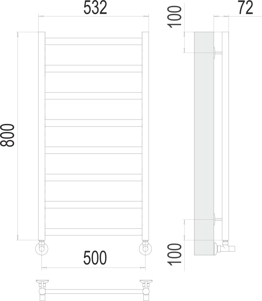Водяной полотенцесушитель Terminus Аврора П8 — классическая модель «лесенка» из нержавеющей стали AISI 304L с прочным порошковым покрытием белого матового цвета (RAL 9003). Конструкция с 8 равноудаленными перекладинами диаметром 18 мм и прямыми стойками 32 мм обеспечивает эффективную сушку и нагрев помещения площадью до 2.5 м² с теплоотдачей 264 Вт/ч. Монтажное межосевое расстояние 50 см, подключение — нижнее. В комплект входит кран Маевского, заглушка и телескопическое крепление для простой регулировки по глубине. Важно соблюдать схему заземления, указанную в документации. Рабочее давление — 9 атм, гарантия производителя — 10 лет