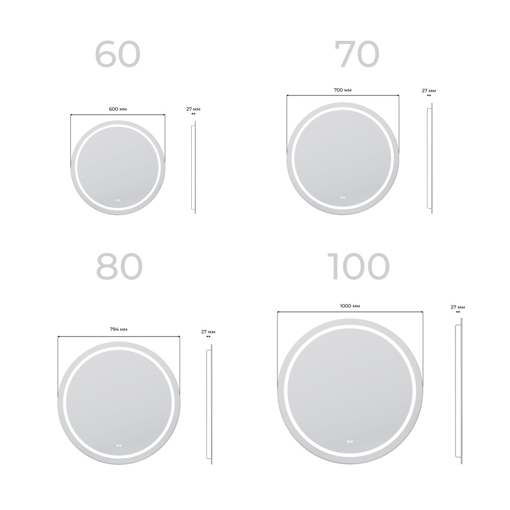 Стильное круглое зеркало в ванную VIGO Holly Classic 800 диаметром 79,4 см с современной LED подсветкой и сенсорным управлением. Это качественное российское зеркало из ABS-пластика сочетает в себе элегантный дизайн и передовые технологии. Сенсорный выключатель позволяет легко управлять встроенной подсветкой, а подвесной монтаж обеспечивает простоту установки. Зеркало отличается надежностью и долговечностью, на него предоставляется гарантия 2 года. Идеальное решение для современной ванной комнаты, которое подчеркнет ваш вкус и создаст уютную атмосферу.