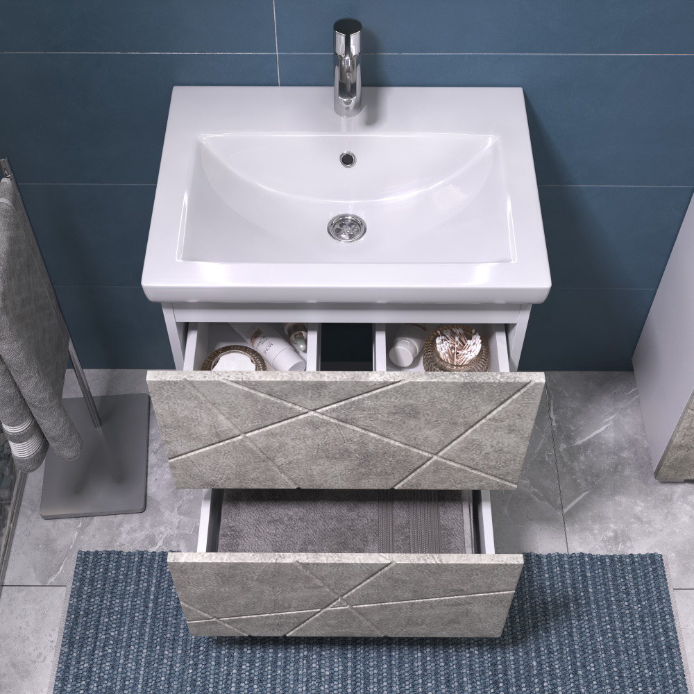 2 выдвижных ящика, скрытые направляющие, открывание нажатием "push-to-open", 2 навеса, 2 опоры квадратные регулируемые