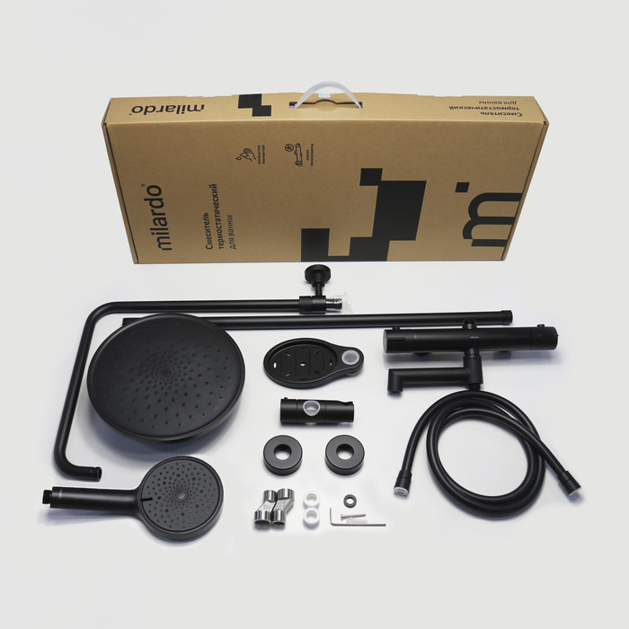 Лаконичный и стильный черный смеситель Ideal Spa будет гармонично смотреться практически в любом интерьере ванной комнаты. Преимущество термостата над обычным смесителем – мгновенная реакция на любые изменения в соотношении горячей и холодной воды в трубопроводе. При небольших перепадах температура смешанного потока останется стабильной, а при внезапном отключении холодной воды, термостат полностью перекроет подачу горячей. Термостат уже настроен на максимально комфортную температуру (38 °C) для экономного потребления горячей воды, что особенно актуально в домах со счетчиками воды.