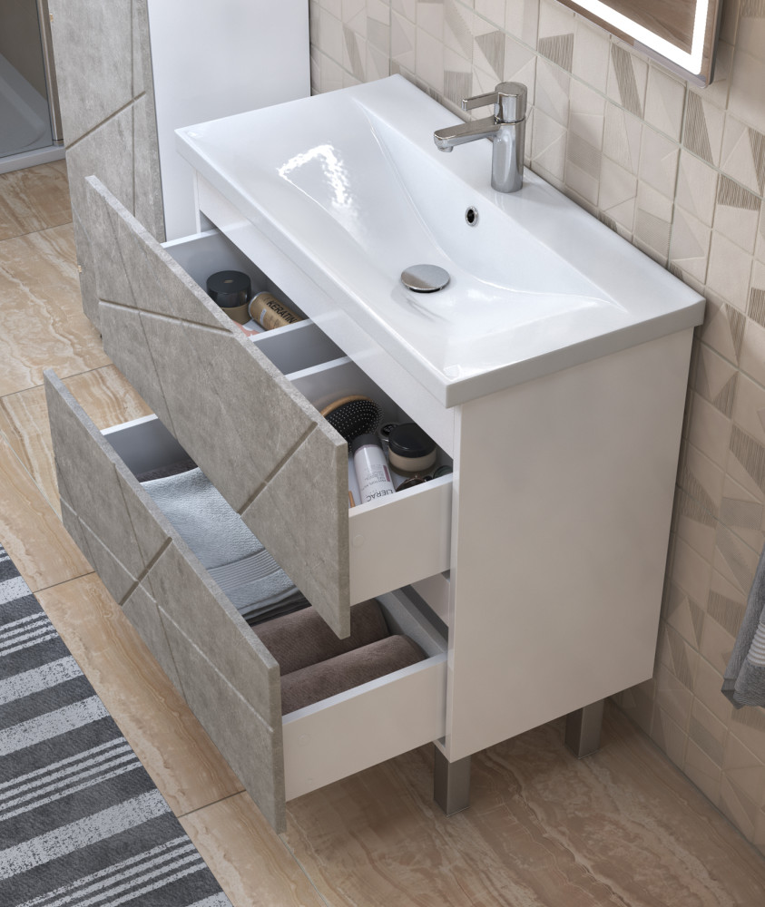 2 выдвижных ящика, скрытые направляющие, открывание нажатием "push-to-open", 2 навеса, 2 опоры квадратные регулируемые