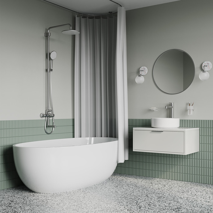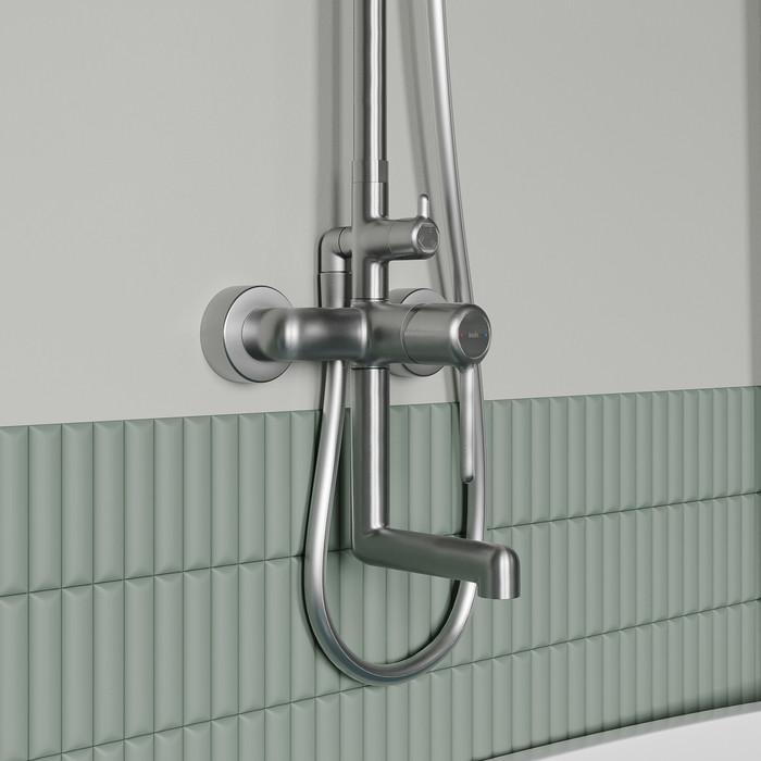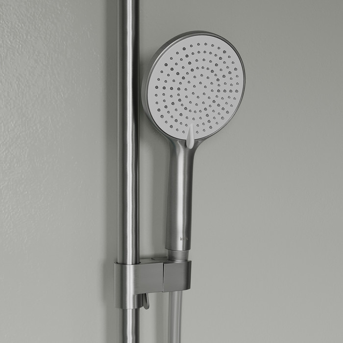 Стильная функциональная душевая система Aiger, где удачно сочетается актуальный современный дизайн и трендовый оттенок матового хрома с брашированным покрытием. Тонкая удлиненная ручка добавляет смесителю изящества и комфорт в управлении. • Штанга верхнего душа с регулируемой высотой 860-1360 мм позволяет с комфортом принимать душ всей семье. • Поток воды переключается поворотным керамическим дивертором на стойке – он повторяет дизайн ручки, выглядит стильно и элегантно. • Излив удлиненной формы в общем стиле смесителя, можно повернуть параллельно стене. Скрытый силиконовый аэратор добавляет эстетики и легко чистится от загрязнений. • В комплекте гибкий шланг из ПВХ 1,5 м, верхняя (d=228 мм) и ручная (3 режима, d=116 мм) лейки из коллекции Optima Home в тон. • Покрытие устойчиво к коррозии, появлению царапин, сколов и потускнению. На протяжении многих лет будет выглядеть как новое. Гарантия на смесители IDDIS® – 10 лет, на душевые аксессуары – 3 года. (с) Авторский текст, ноябрь 2023 г