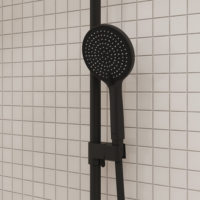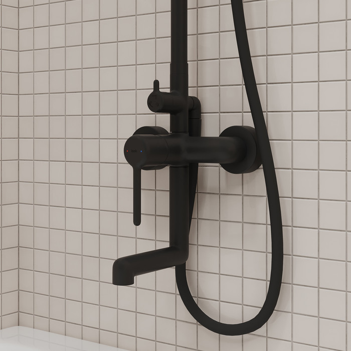 Стильная функциональная душевая система Aiger, где удачно сочетается актуальный современный дизайн и востребованный черный матовый цвет. Тонкая удлиненная ручка добавляет смесителю изящества и комфорт в управлении. • Штанга верхнего душа с регулируемой высотой 860-1360 мм позволяет с комфортом принимать душ всей семье. • Поток воды переключается поворотным керамическим дивертором на стойке – он повторяет дизайн ручки, выглядит стильно и элегантно. • Излив удлиненной формы в общем стиле смесителя, можно повернуть параллельно стене. Скрытый силиконовый аэратор добавляет эстетики и легко чистится от извести и загрязнений. • В комплекте гибкий шланг из ПВХ 1,5 м, верхняя (d=228 мм) и ручная (3 режима, d=116 мм) лейки из коллекции Optima Home в тон смесителю. • Покрытие устойчиво к коррозии, появлению царапин, сколов и потускнению. На протяжении многих лет будет выглядеть как новое. Гарантия на смесители IDDIS® – 10 лет, на душевые аксессуары – 3 года. (с) Авторский текст, ноябрь 2023 г