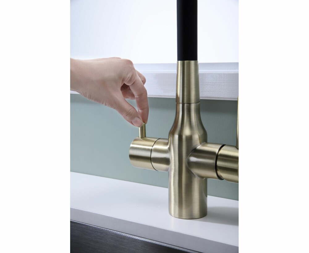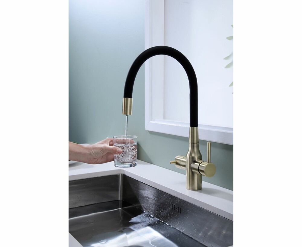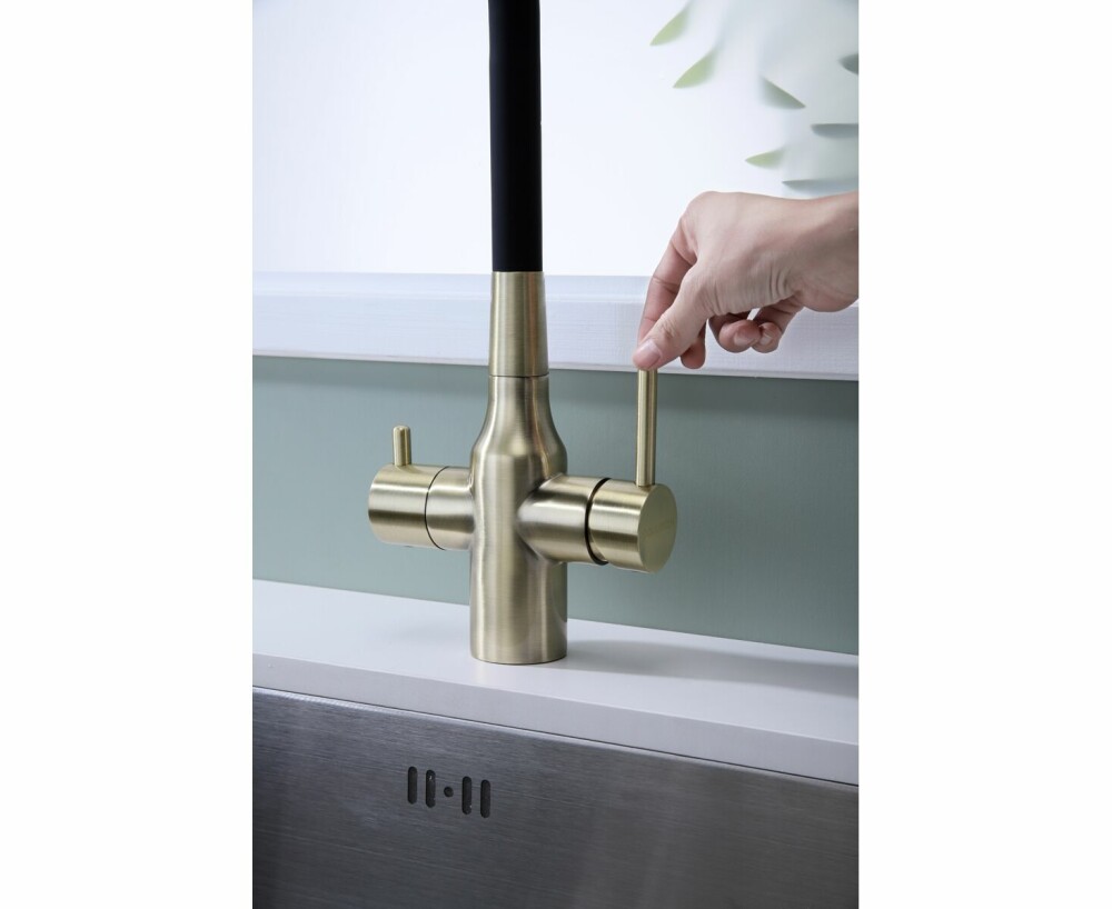 Смеситель поддерживает подключение фильтра для питьевой воды, что делает его универсальным и практичным вариантом для современной кухни. Удобное рычажное управление обеспечивает плавную регулировку температуры и напора.