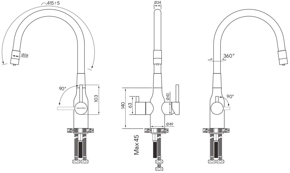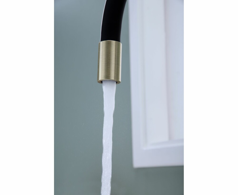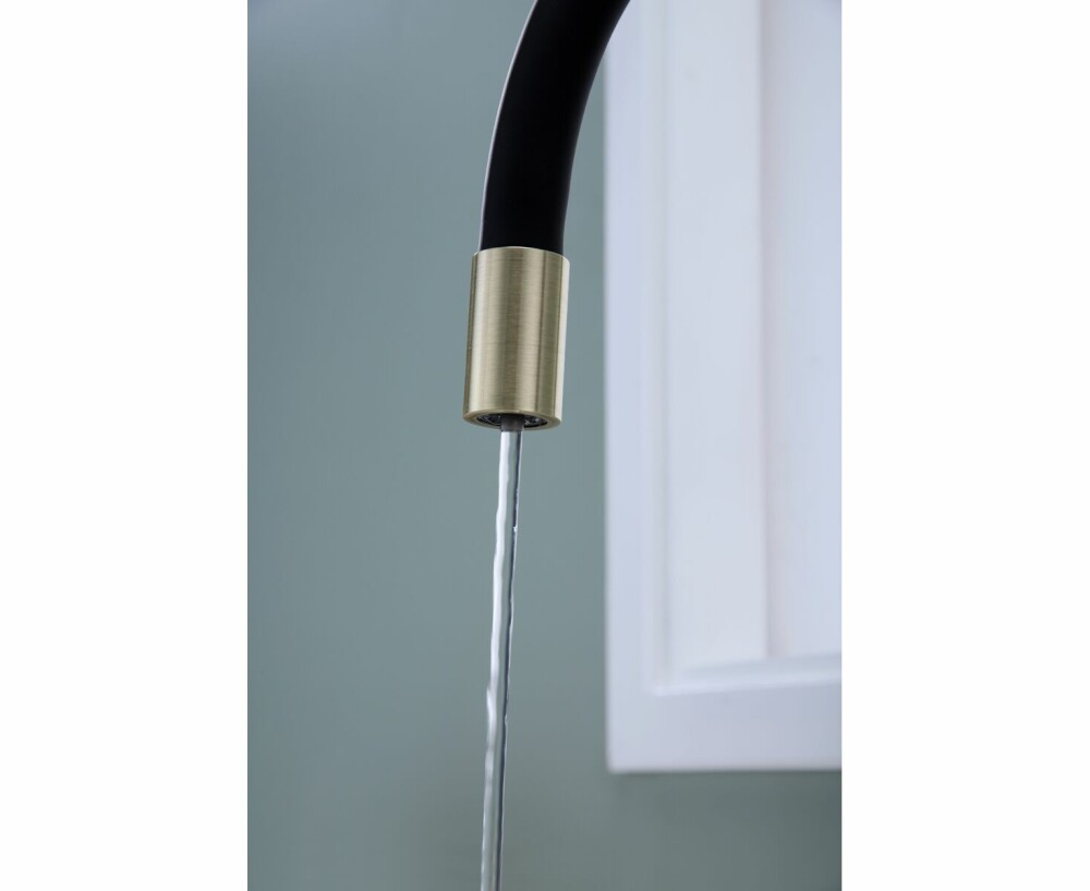Гибкий излив длиной 415 мм обеспечивает высокую манёвренность: удобно мыть овощи, наполнять крупные ёмкости, ухаживать за мойкой. Корпус из латуни гарантирует долговечность, устойчивость к коррозии и стабильную работу даже при регулярных нагрузках.