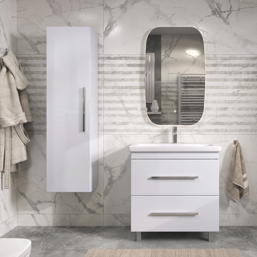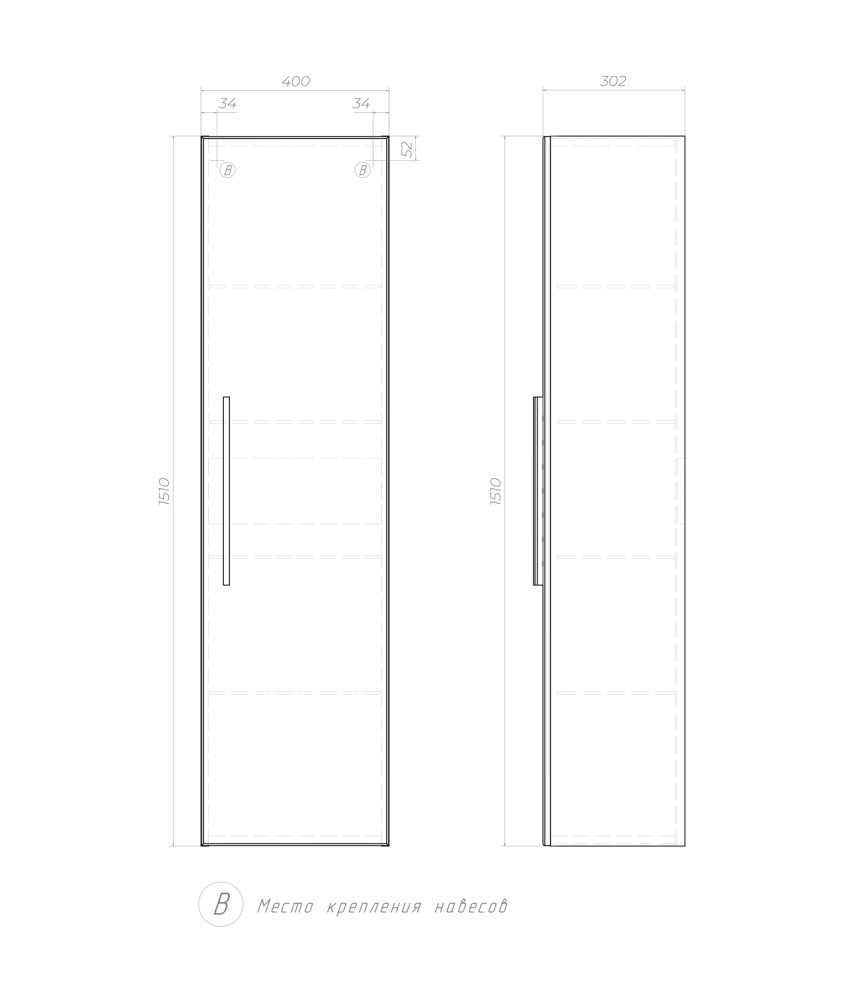 1 дверца, 4 стеклянные полки, ручка металлическая хромированная