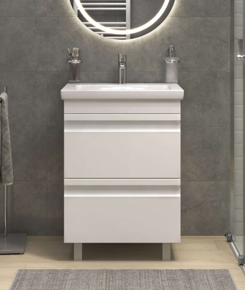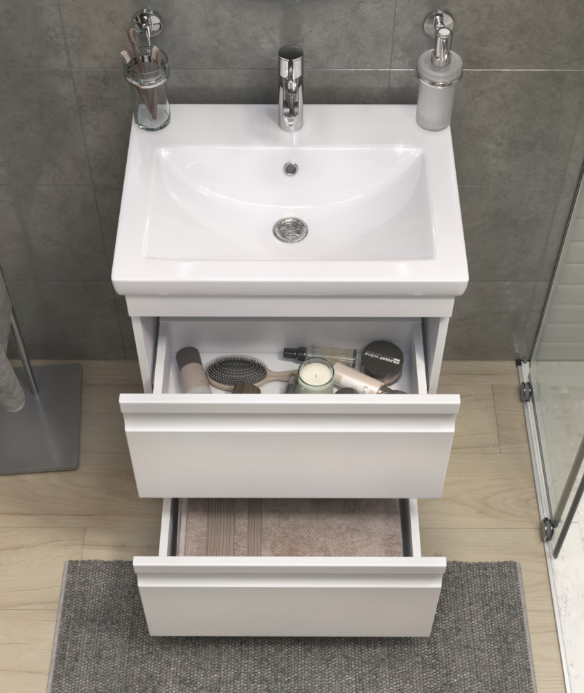 2 выдвижных ящика, шариковые направляющие полного выдвижения, 2 опоры квадратные регулируемые, 1 сифон