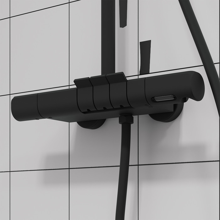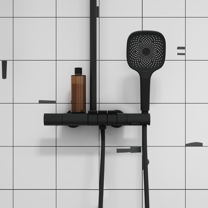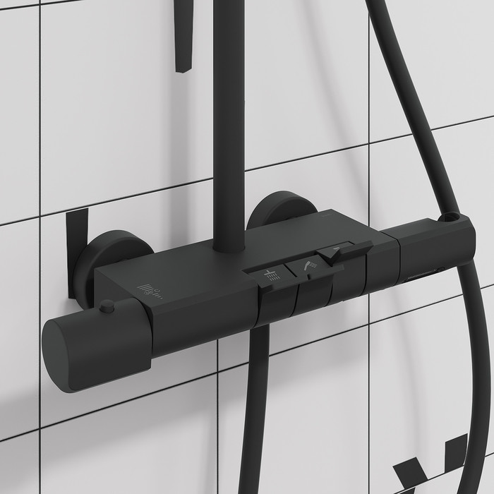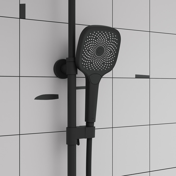 Современная душевая система SpaHome в трендовом черном цвете, где собраны топовые технологии для самого комфортного принятия душа и ванны: клавишное управление, термостат, тропический верхний душ, большая ручная лейка, излив. • Термостат поддерживает выбранный температурный режим, что важно для безопасности детей и пожилых людей. Плюс настроив температуру один раз, не придется сливать лишние литры и платить за них. • 3 выхода для воды: излив, верхняя лейка, ручная лейка. Каждый из них включается мягким нажатием клавиши – как по отдельности, так и одновременно. • Напор воды регулируется той же клавишей: чем ниже опущена клавиша, тем он сильнее. • Скрытый в корпусе излив позволит наполнить ванну или набрать емкость с водой. • Минималистичный дизайн смотрится лаконично и стильно. • В комплекте: верхняя лейка 260х260х65 мм, ручная лейка с 3 режимами 270х125 мм, гладкий душевой шланг 1,5 м. Гарантия на смеситель – 10 лет, на душевые аксессуары – 3 года