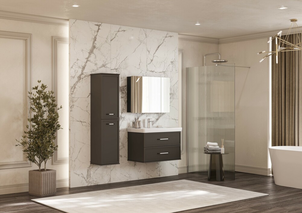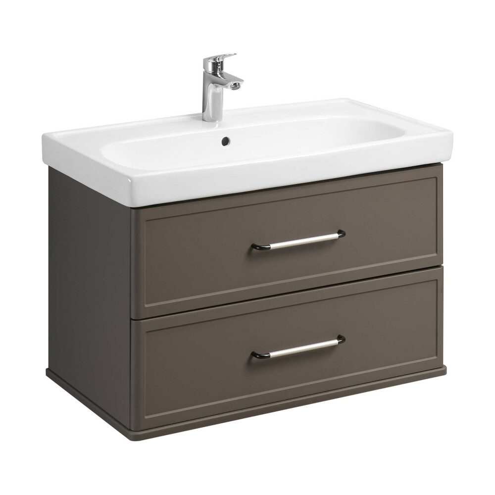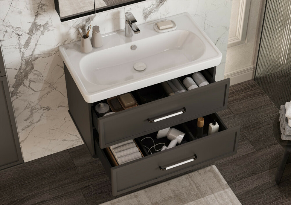 Коллекция мебели Нео-классика представляет собой гармоничное сочетание традиционных элементов и современных тенденций, создавая неповторимый стиль вашей ванной комнаты.Тумба изготовлена из высококачественной МДФ, покрытой матовой плёнкой. Фасады с фрезеровкой в рамочной форме гармонично сочетаются с остальными предметами этой коллекции. В тумбе есть два вместительных ящика с эргономичной организацией пространства, которую можно настроить по своему удобству. Ящики открываются при помощи удобной ручки, а благодаря направляющим с доводчиками обеспечивается плавное закрытие, что гарантирует бесшумность и комфорт использования мебели