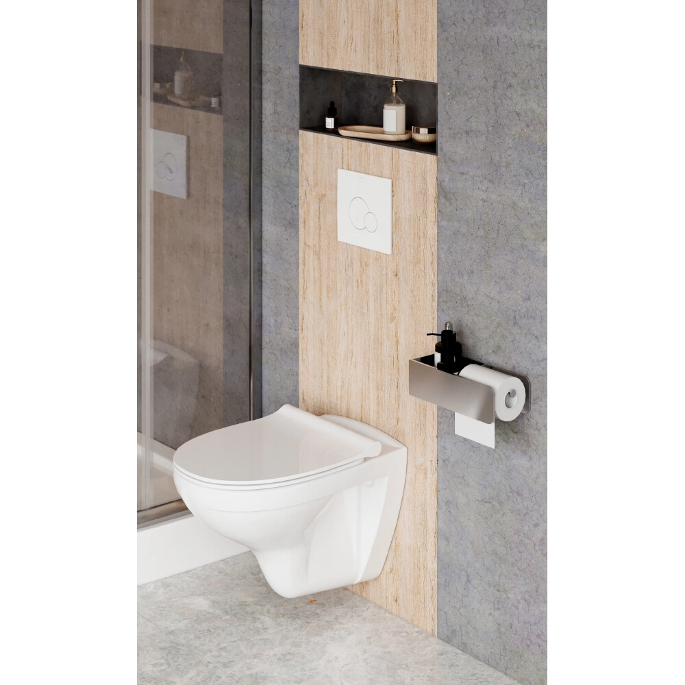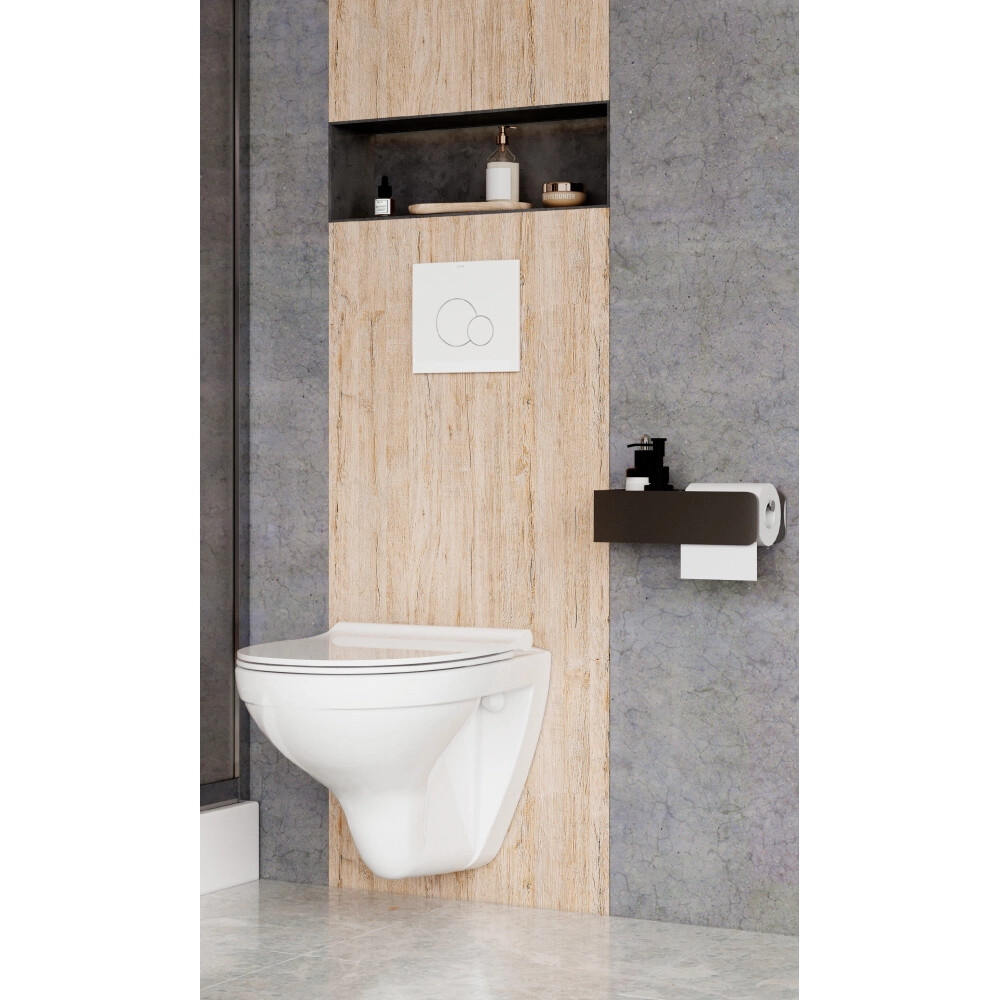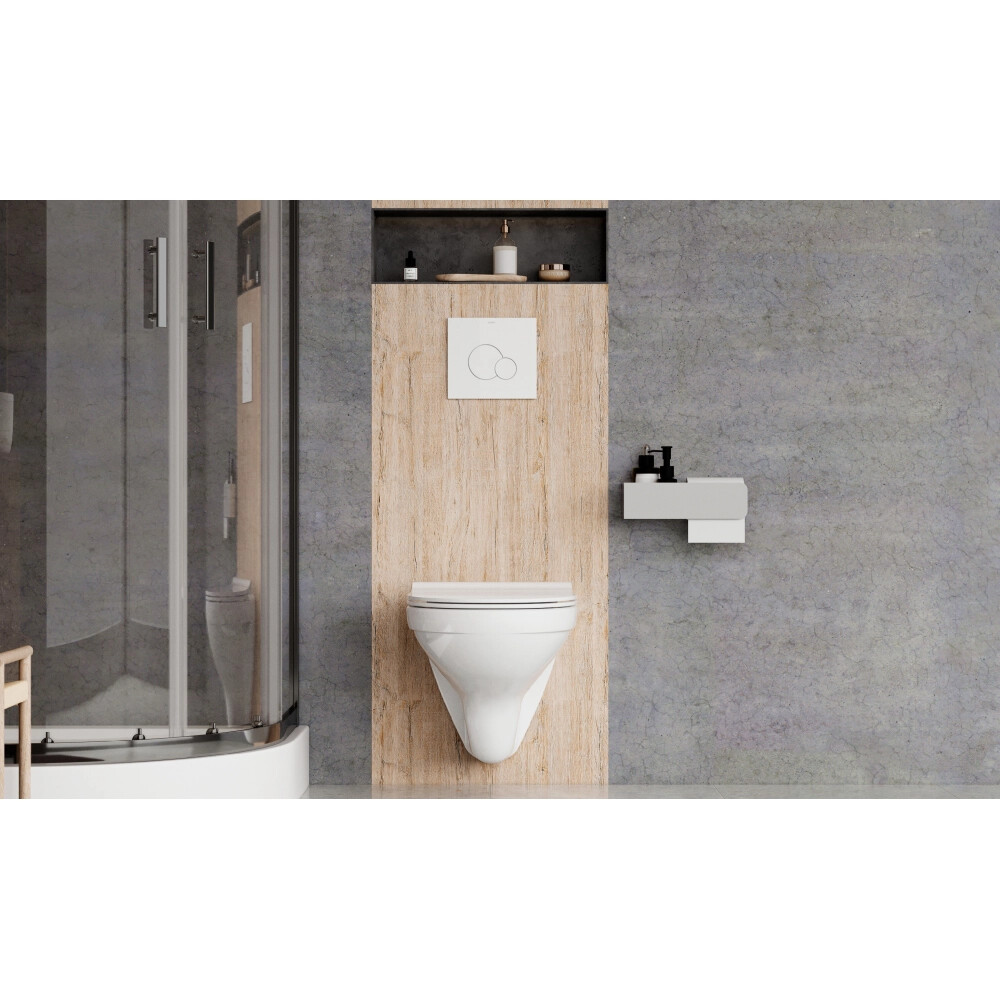 1WH501832 PACK Бореаль rimless с белой кнопкой — это полноценный комплект для организации современного и комфортного санузла. В набор входит подвесная чаша безободковая, инсталляция, сиденье с микролифтом и белая панель смыва.