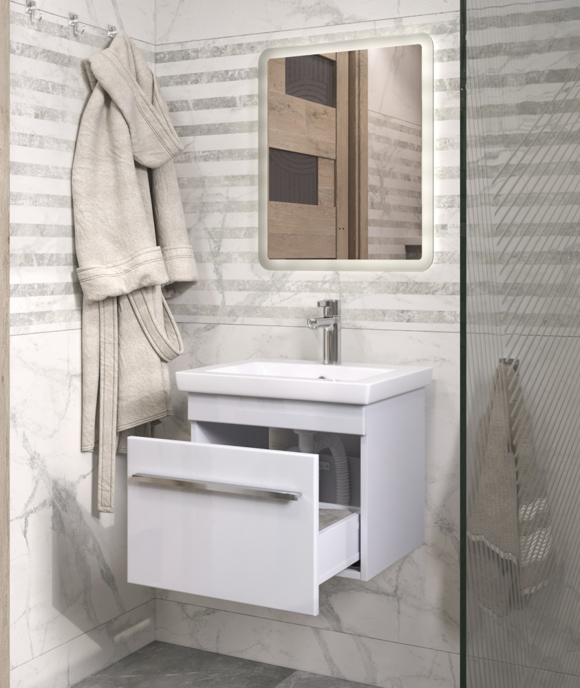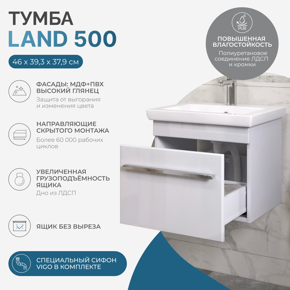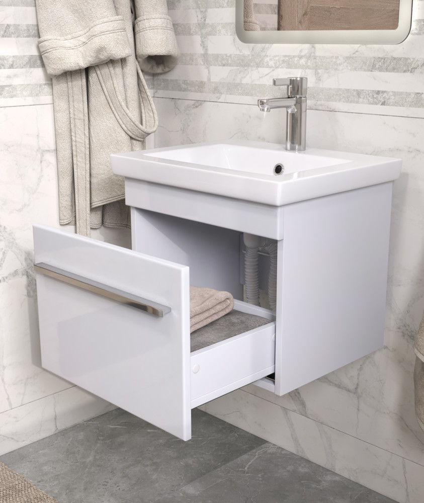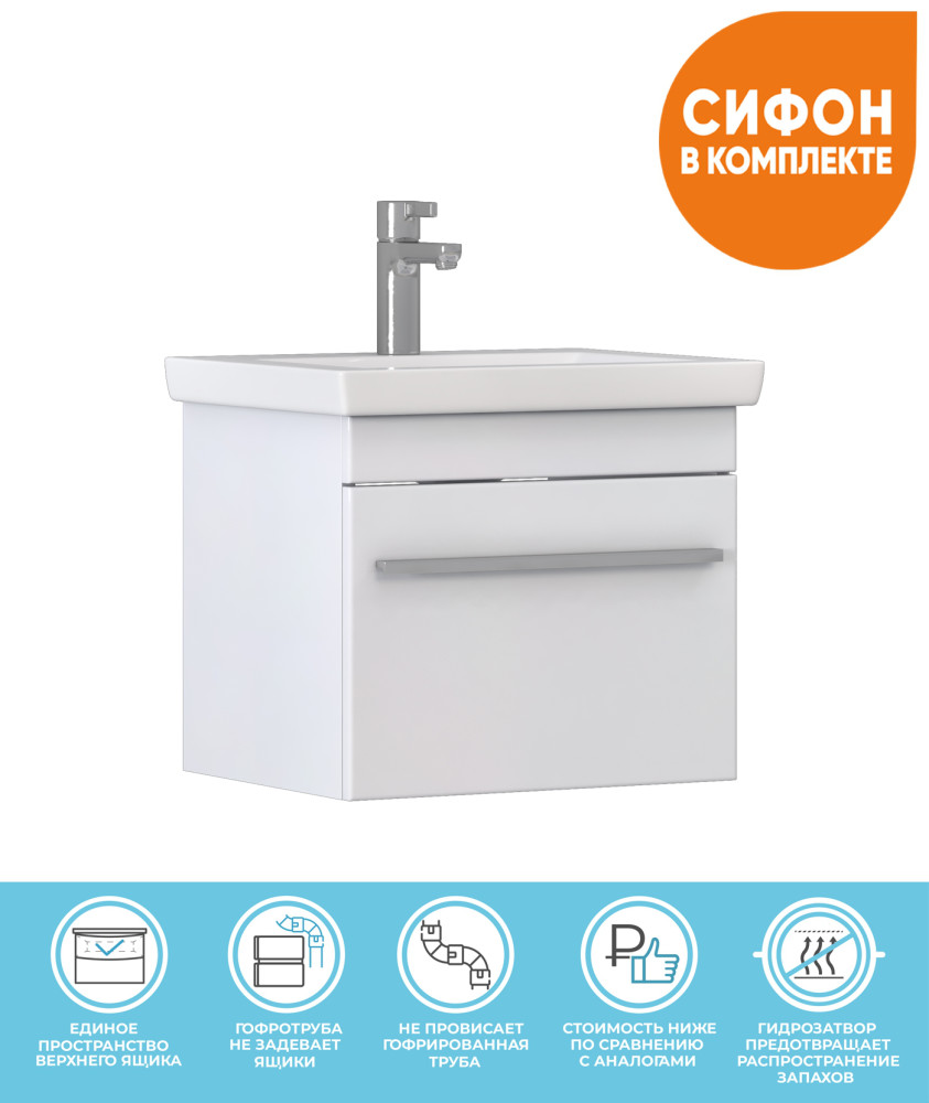 2 выдвижных ящика, шариковые направляющие полного выдвижения, 2 опоры квадратные регулируемые, 1 сифон