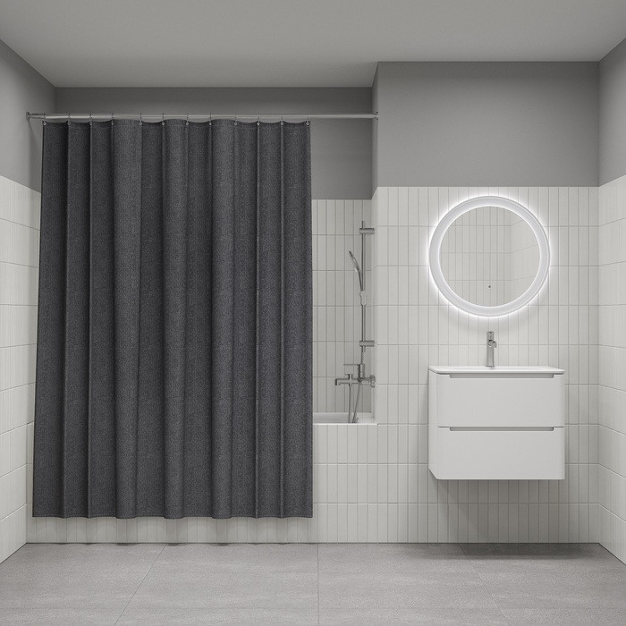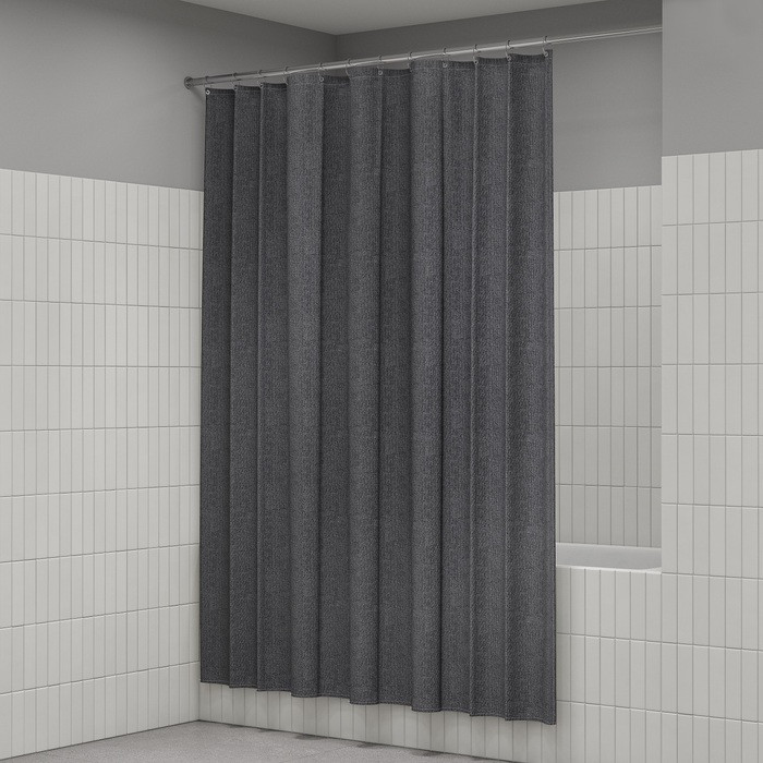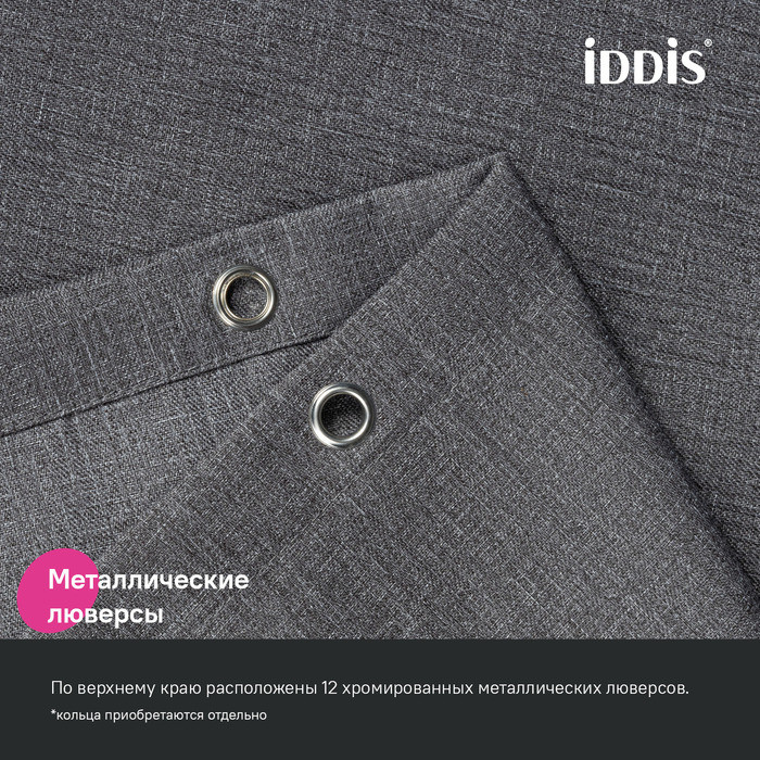 Однотонная плотная текстильная штора для ванной насыщенного серого цвета с фактурой натурального льна, что делает ее элегантной и утонченной. Напоминает классические текстильные шторы и соответствует актуальному тренду оформления ванной как уютной жилой комнаты. • Изготовлена из износостойкого полиэстера с водоотталкивающей пропиткой. При попадании на ткань вода скатывается каплями. • По верхнему краю расположены 12 хромированных металлических люверсов. • Без колец в комплекте. • Штора имеет утяжеляющую нить по нижнему краю, которая позволяет избежать задирания ткани. • Легко ухаживать: шторку для ванной комнаты можно стирать в стиральной машине в деликатном режиме и гладить утюгом на минимальной температуре. Гарантия на текстильные аксессуары IDDIS® – 1 год