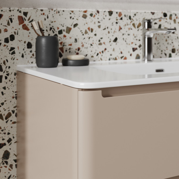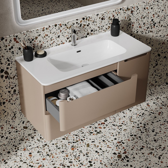Вместительная подвесная тумба с плоским умывальником Edifice в теплом оттенке капучино – воплощение современного минимализма. Мягкие линии корпуса в сочетании с удобными интегрированными ручками выглядят свежо и актуально. Смотрится аккуратно, легко и не усложняет процесс уборки в ванной благодаря подвесной конструкции. • В комплекте умывальник (арт. 0101000i28) из качественного фарфора. Он отличается высокой прочностью и прост в уходе: не задерживает загрязнения и неприятные запахи, надолго сохраняя первозданную белизну. • Два выдвижных ящика закрываются плавно и бесшумно благодаря высококачественным скрытым направляющим с доводчиками немецкого производства. • Надежные крепления рассчитаны на большой вес и позволяют равномерно распределять нагрузку. • Фурнитура рассчитана на 30 000 открываний, что составляет более 10 лет исправной работы. Гарантия на мебель IDDIS® – 3 года. (с) Авторский текст, август 2023 г