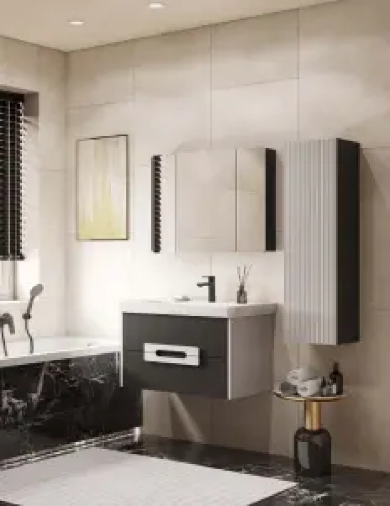 Коллекция мебели Ар-Деко воплощает изящество и элегантность этого уникального направления. Каждая деталь коллекции от массивных хромированных ручек до фрезерованных панелей - продумана до мелочей. Зеркальный шкаф выполнен из влагостойкой ЛДСП: корпус выполнен из ЛВДСП в цвете кашемир, а фасад из ЛВДСП, покрытый зеркальным полотном. Фасад зеркального шкафа имеет закругленные углы, что повторяет стилистику Ар-деко и мягкие плавные закругления на раковине. Внутреннее пространство разделено на три половины, в каждой из которой есть регулируемые полочки из затемненного стекла для хранения. Эти полочки также установлены на специальных держателях, что предотвращает опрокидывание предметов. Открывание за фасад позволяет быстро добраться до необходимых вещей, а благодаря петлям с доводчиками обеспечивается плавное закрывание, что гарантирует бесшумность и комфорт использования мебели