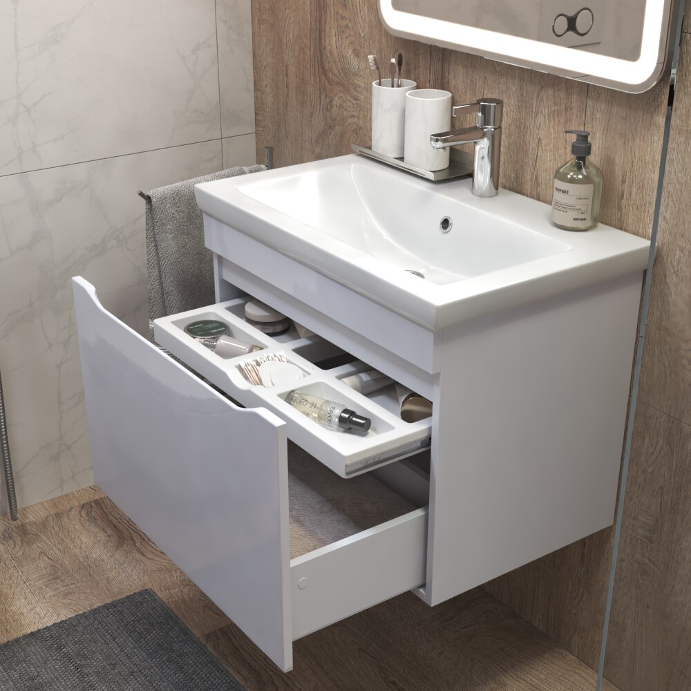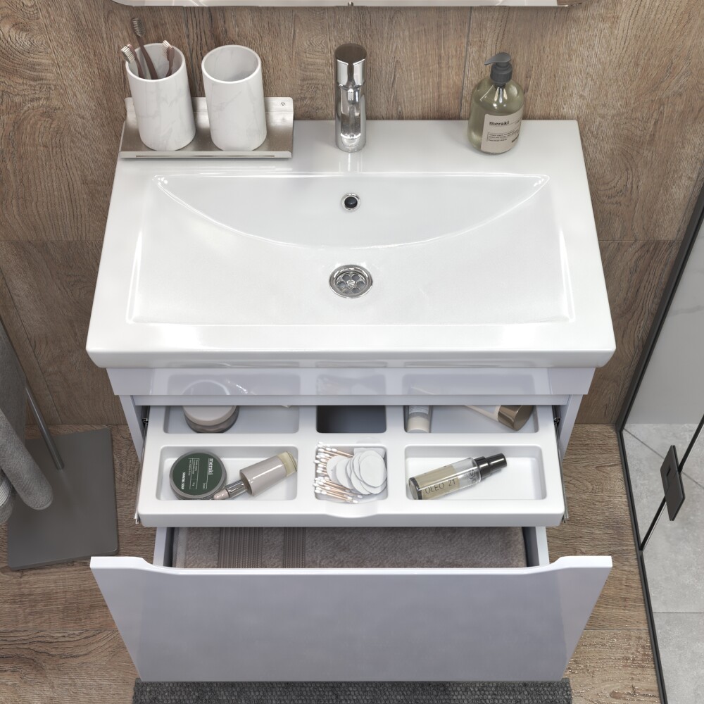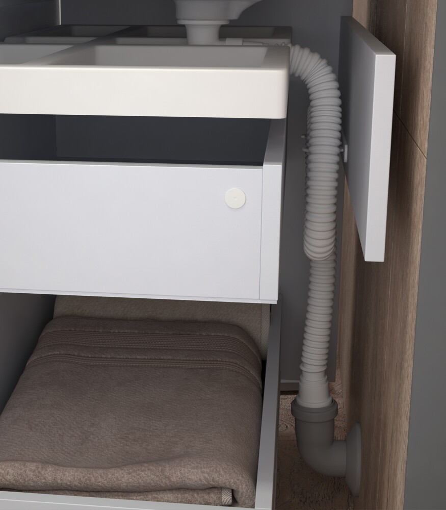 1 ящик, выдвижной органайзер для мелочей, направляющие шариковые полного выдвижения, 2 навеса, 1 сифон
