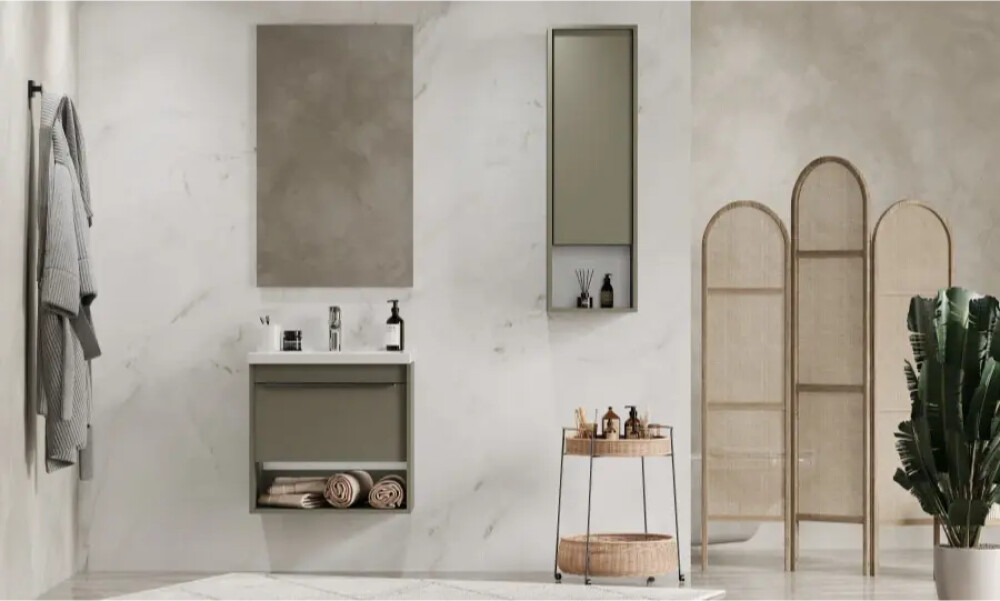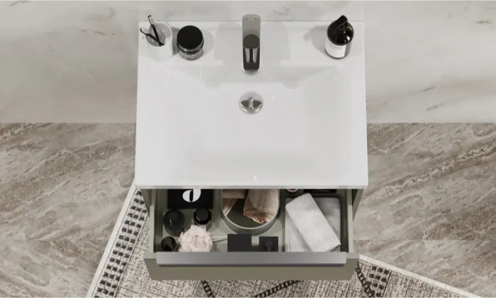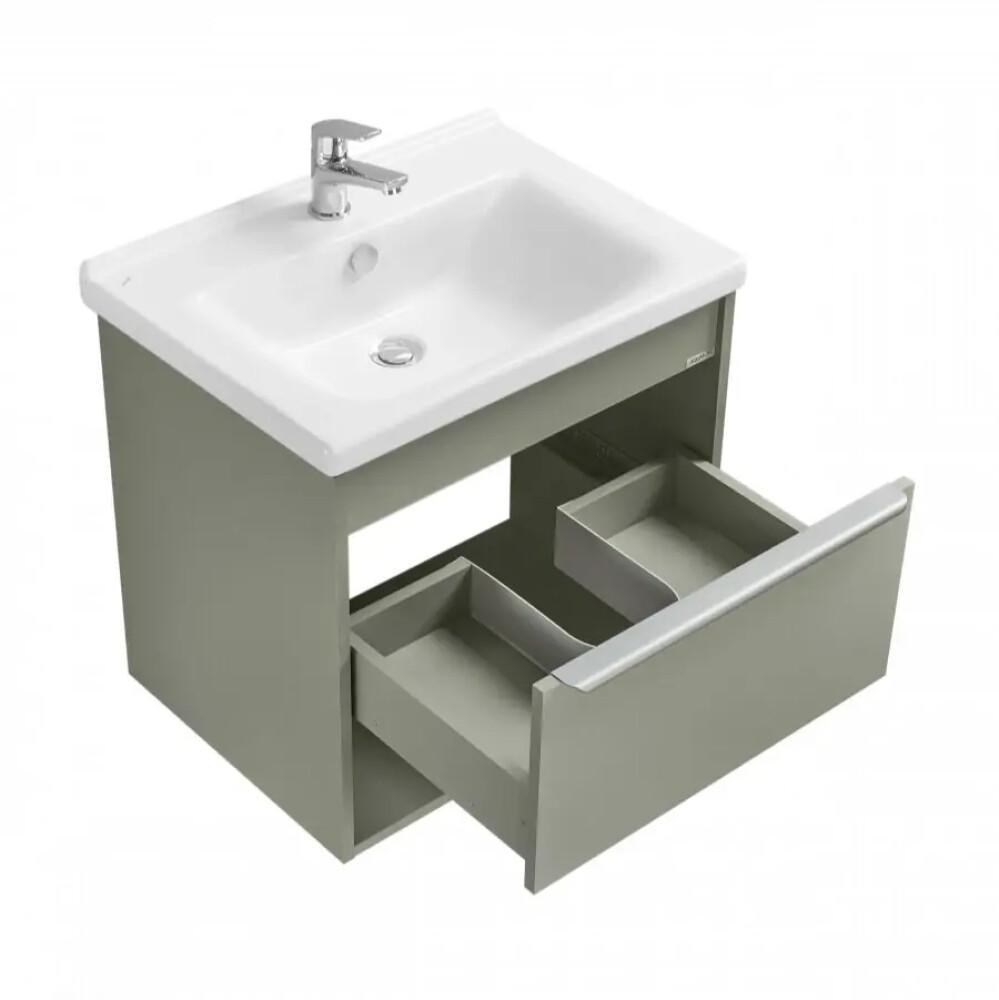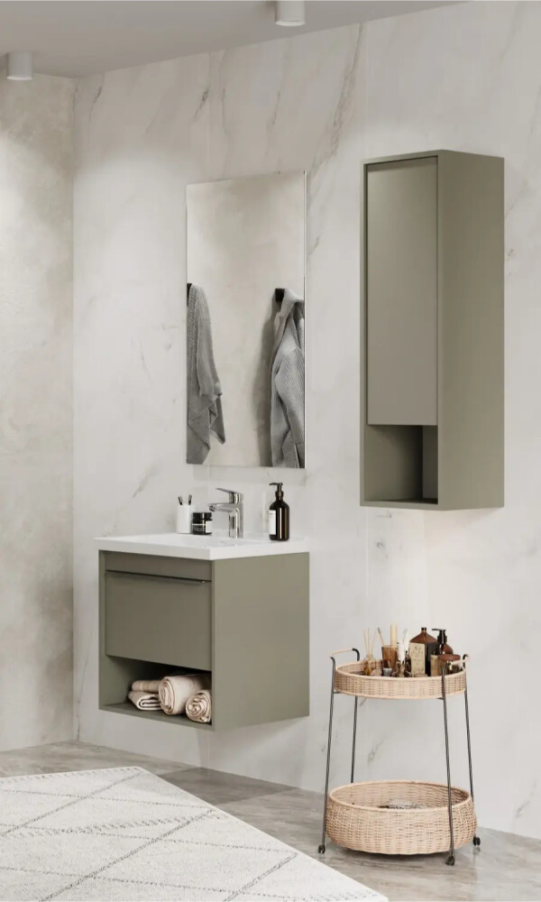 Тумбы для ванной комнаты коллекции Хоуп — это идеальное сочетание простоты линий и функциональности, которое преобразит ваше пространство. Каждая тумба в этой коллекции создана с вниманием к деталям и стремлением к гармонии, что делает их не только практичными, но и эстетически привлекательными. Элегантные линии и современный дизайн подчеркивают утонченность интерьера, а использование влагостойкой ЛДСП гарантирует долговечность и простоту в уходе. Удобная ручка добавляет нотку изысканности, а открытая ниша предоставляет возможность организовать пространство так, как вам удобно — будь то размещение любимых аксессуаров или необходимых принадлежностей. Корпус и фасад выполнены из влагостойкой ЛДСП в светло-зеленом цвете. Ручка в данной коллекции в трендовом цвете gun metal (вороненый металл). Изготовленная из алюминия, она не только привлекает внимание своим эстетичным дизайном, но и имеет надежный и удобный хват. Тумбы коллекции Хоуп за счет своих цветовых решений в белом, древесном и светло-зеленом исполнении идеально впишутся в любой стиль ванной комнаты, от минимализма до классики, создавая атмосферу уюта и комфорта. Они не только помогут поддерживать порядок, но и станут ярким акцентом вашего интерьера. Направляющие полного выдвижения скрытого монтажа с доводчиком позволят использовать весь функционал ящиков бесшумно и с комфортом, а открытая ниша дает возможность убирать туда необходимы принадлежности, чтобы они всегда были под рукой. Высота полезного пространства - 160 мм