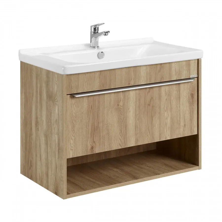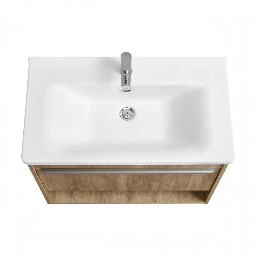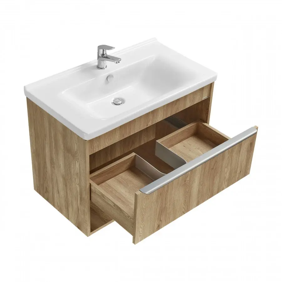 Тумбы для ванной комнаты коллекции Хоуп — это идеальное сочетание простоты линий и функциональности, которое преобразит ваше пространство. Каждая тумба в этой коллекции создана с вниманием к деталям и стремлением к гармонии, что делает их не только практичными, но и эстетически привлекательными. Элегантные линии и современный дизайн подчеркивают утонченность интерьера, а использование влагостойкой ЛДСП гарантирует долговечность и простоту в уходе. Удобная ручка добавляет нотку изысканности, а открытая ниша предоставляет возможность организовать пространство так, как вам удобно — будь то размещение любимых аксессуаров или необходимых принадлежностей. Корпус и фасад выполнены из влагостойкой ЛДСП в светло-коричневом цвете. Ручка в данной коллекции в трендовом цвете gun metal (вороненый металл). Изготовленная из алюминия, она не только привлекает внимание своим эстетичным дизайном, но и имеет надежный и удобный хват. Тумбы коллекции Хоуп за счет своих цветовых решений в белом, древесном и светло-зеленом исполнении идеально впишутся в любой стиль ванной комнаты, от минимализма до классики, создавая атмосферу уюта и комфорта. Они не только помогут поддерживать порядок, но и станут ярким акцентом вашего интерьера. Направляющие полного выдвижения скрытого монтажа с доводчиком позволят использовать весь функционал ящиков бесшумно и с комфортом, а открытая ниша дает возможность убирать туда необходимы принадлежности, чтобы они всегда были под рукой. Высота полезного пространства - 160 мм
