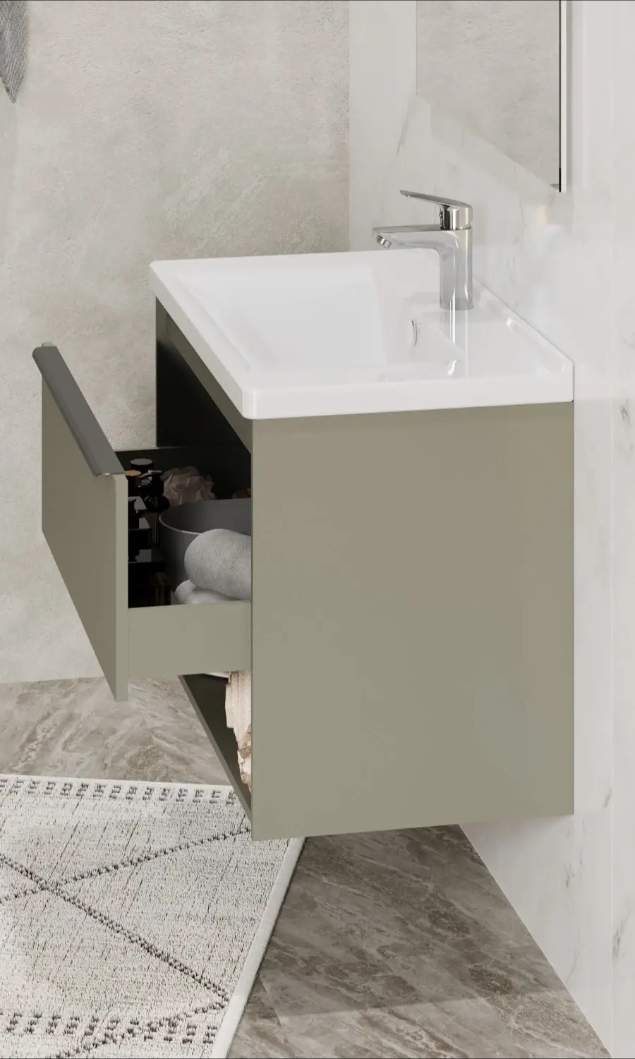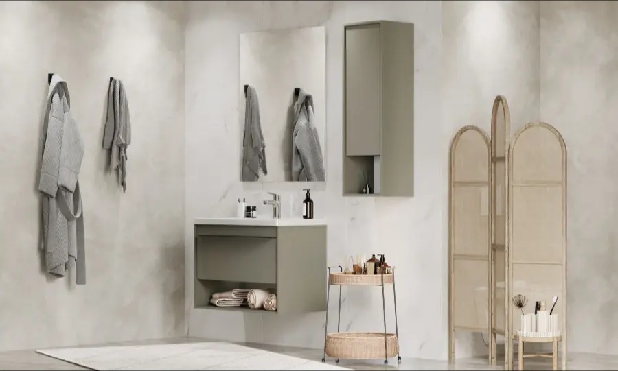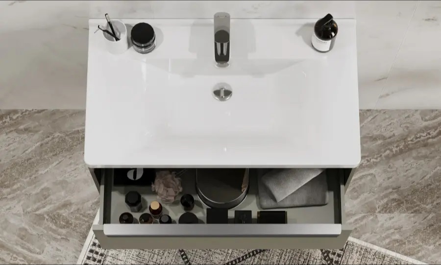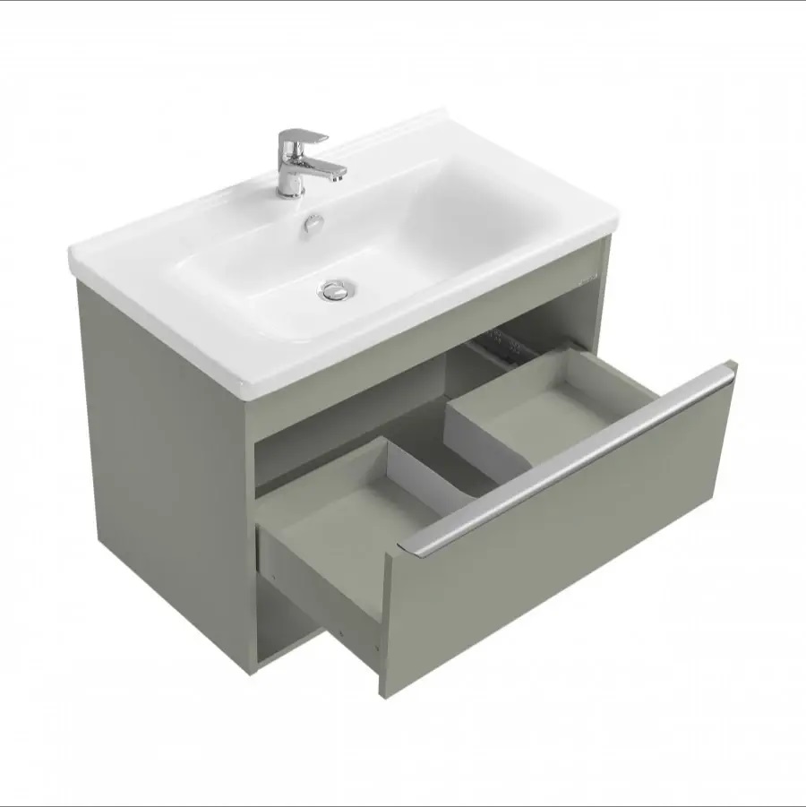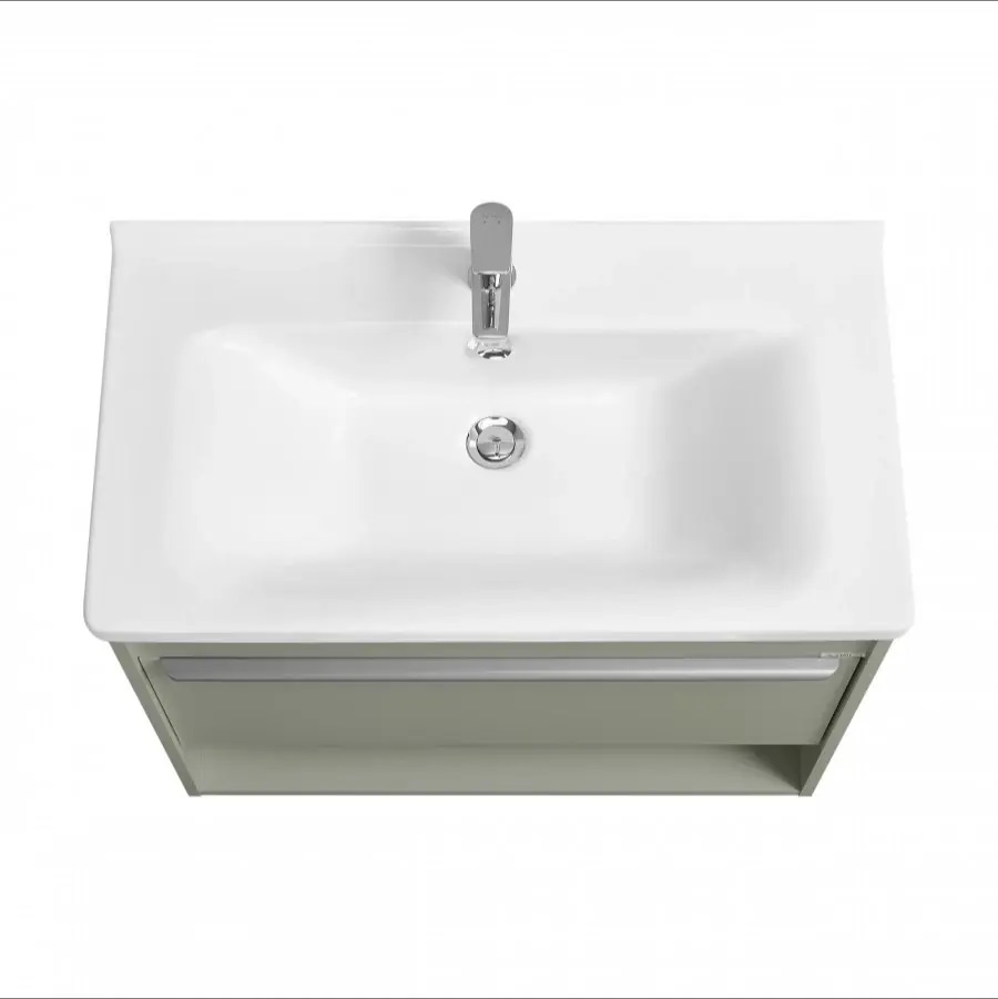 Тумбы для ванной комнаты коллекции Хоуп — это идеальное сочетание простоты линий и функциональности, которое преобразит ваше пространство. Каждая тумба в этой коллекции создана с вниманием к деталям и стремлением к гармонии, что делает их не только практичными, но и эстетически привлекательными. Элегантные линии и современный дизайн подчеркивают утонченность интерьера, а использование влагостойкой ЛДСП гарантирует долговечность и простоту в уходе. Удобная ручка добавляет нотку изысканности, а открытая ниша предоставляет возможность организовать пространство так, как вам удобно — будь то размещение любимых аксессуаров или необходимых принадлежностей. Корпус и фасад выполнены из влагостойкой ЛДСП в светло-зеленом цвете. Ручка в данной коллекции в трендовом цвете gun metal (вороненый металл). Изготовленная из алюминия, она не только привлекает внимание своим эстетичным дизайном, но и имеет надежный и удобный хват. Тумбы коллекции Хоуп за счет своих цветовых решений в белом, древесном и светло-зеленом исполнении идеально впишутся в любой стиль ванной комнаты, от минимализма до классики, создавая атмосферу уюта и комфорта. Они не только помогут поддерживать порядок, но и станут ярким акцентом вашего интерьера. Направляющие полного выдвижения скрытого монтажа с доводчиком позволят использовать весь функционал ящиков бесшумно и с комфортом, а открытая ниша дает возможность убирать туда необходимы принадлежности, чтобы они всегда были под рукой. Высота полезного пространства - 160 мм