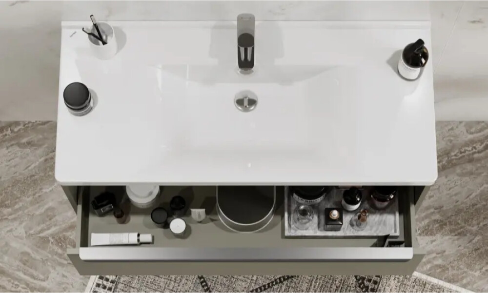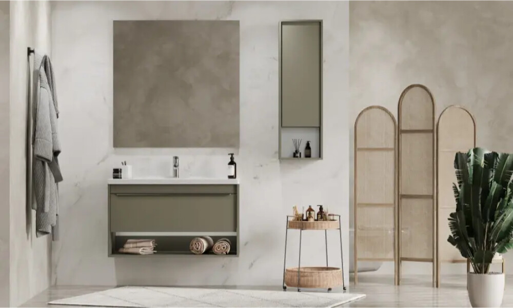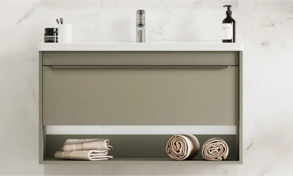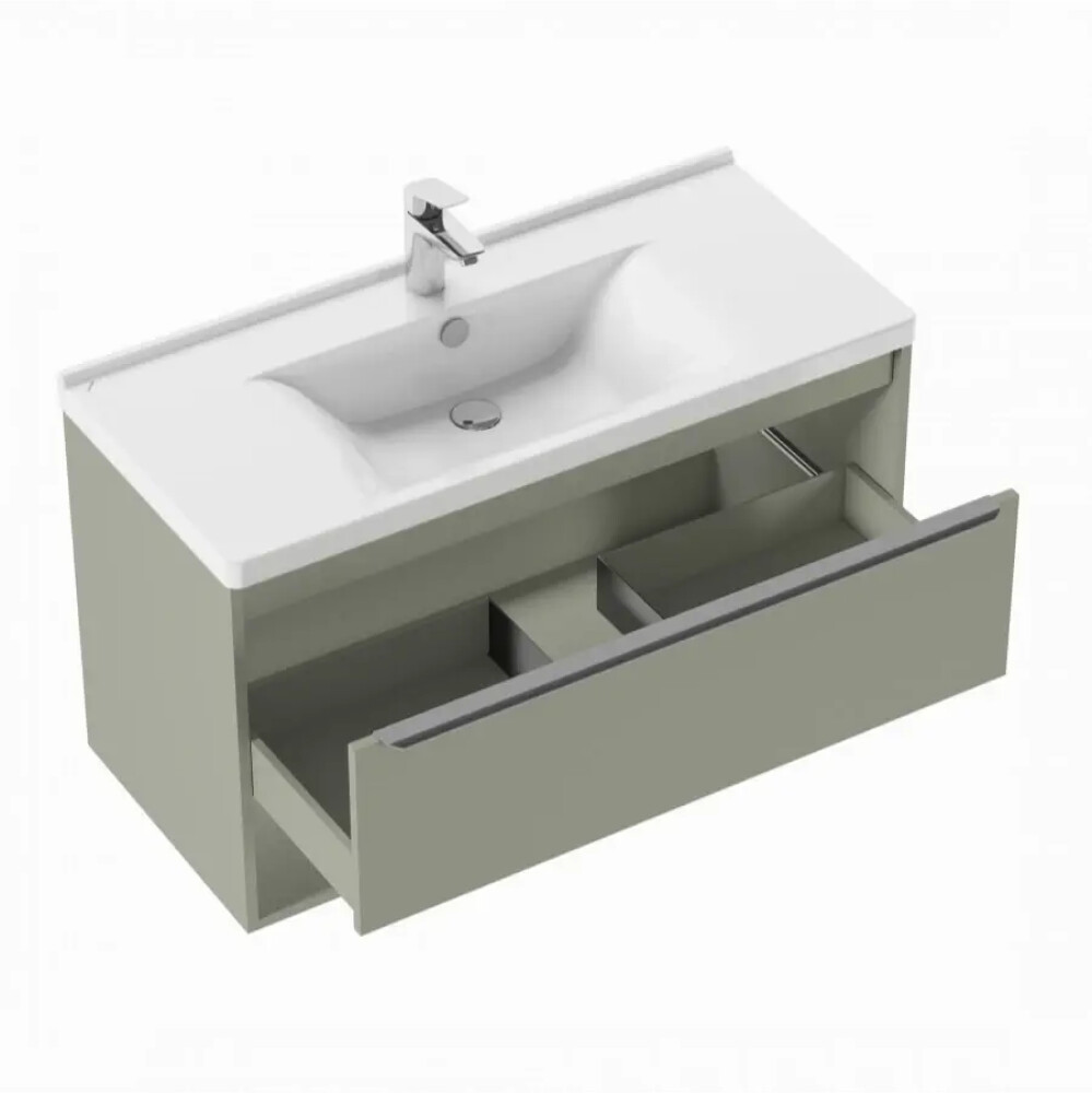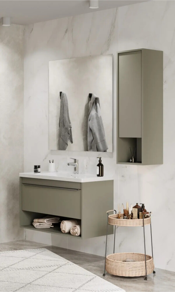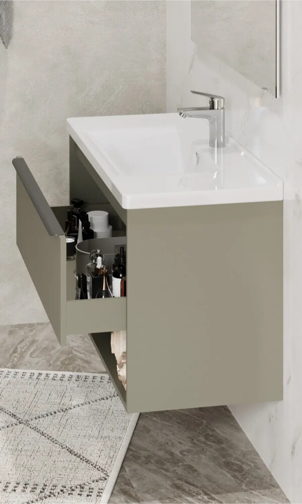 Тумбы для ванной комнаты коллекции Хоуп — это идеальное сочетание простоты линий и функциональности, которое преобразит ваше пространство. Каждая тумба в этой коллекции создана с вниманием к деталям и стремлением к гармонии, что делает их не только практичными, но и эстетически привлекательными. Элегантные линии и современный дизайн подчеркивают утонченность интерьера, а использование влагостойкой ЛДСП гарантирует долговечность и простоту в уходе. Удобная ручка добавляет нотку изысканности, а открытая ниша предоставляет возможность организовать пространство так, как вам удобно — будь то размещение любимых аксессуаров или необходимых принадлежностей. Корпус и фасад выполнены из влагостойкой ЛДСП в светло-зеленом цвете. Ручка в данной коллекции в трендовом цвете gun metal (вороненый металл). Изготовленная из алюминия, она не только привлекает внимание своим эстетичным дизайном, но и имеет надежный и удобный хват. Тумбы коллекции Хоуп за счет своих цветовых решений в белом, древесном и светло-зеленом исполнении идеально впишутся в любой стиль ванной комнаты, от минимализма до классики, создавая атмосферу уюта и комфорта. Они не только помогут поддерживать порядок, но и станут ярким акцентом вашего интерьера. Направляющие полного выдвижения скрытого монтажа с доводчиком позволят использовать весь функционал ящиков бесшумно и с комфортом, а открытая ниша дает возможность убирать туда необходимы принадлежности, чтобы они всегда были под рукой. Высота полезного пространства - 160 мм