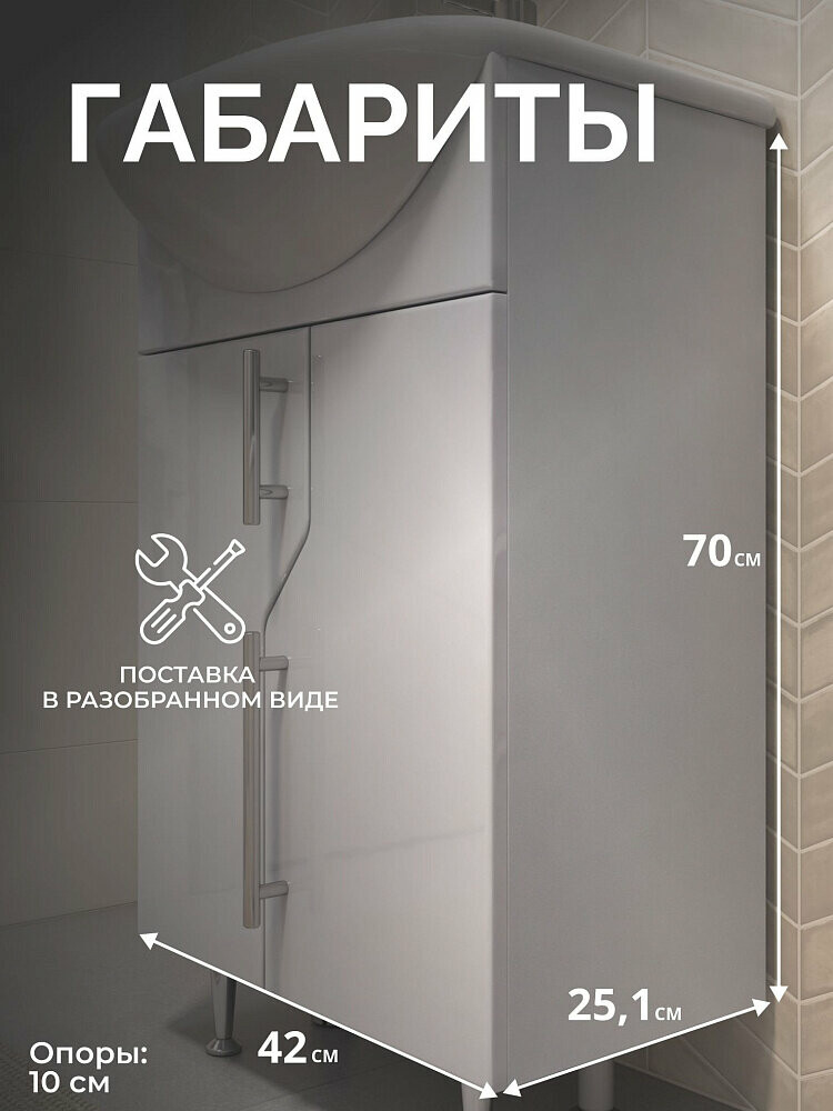 Тумба с раковиной VIGO TURIN напольная в ванную комнату изготавливается из современных и влагостойких материалов: каркас из ЛДСП, фасад из ЛМДФ, облицованный плёнкой ПВХ, которая защищает от выгорания и изменения цвета. Петли, идущие в комплекте с тумбой имеют более 60 000 рабочих циклов. Хромированные пластиковые ручки минимизируют придают ещё больше стиля вашей ванной комнате. Тумба напольная для ванной VIGO TURIN с раковиной - функциональная мебель, выполненная в современном дизайне и подойдёт практически к любому интерьеру