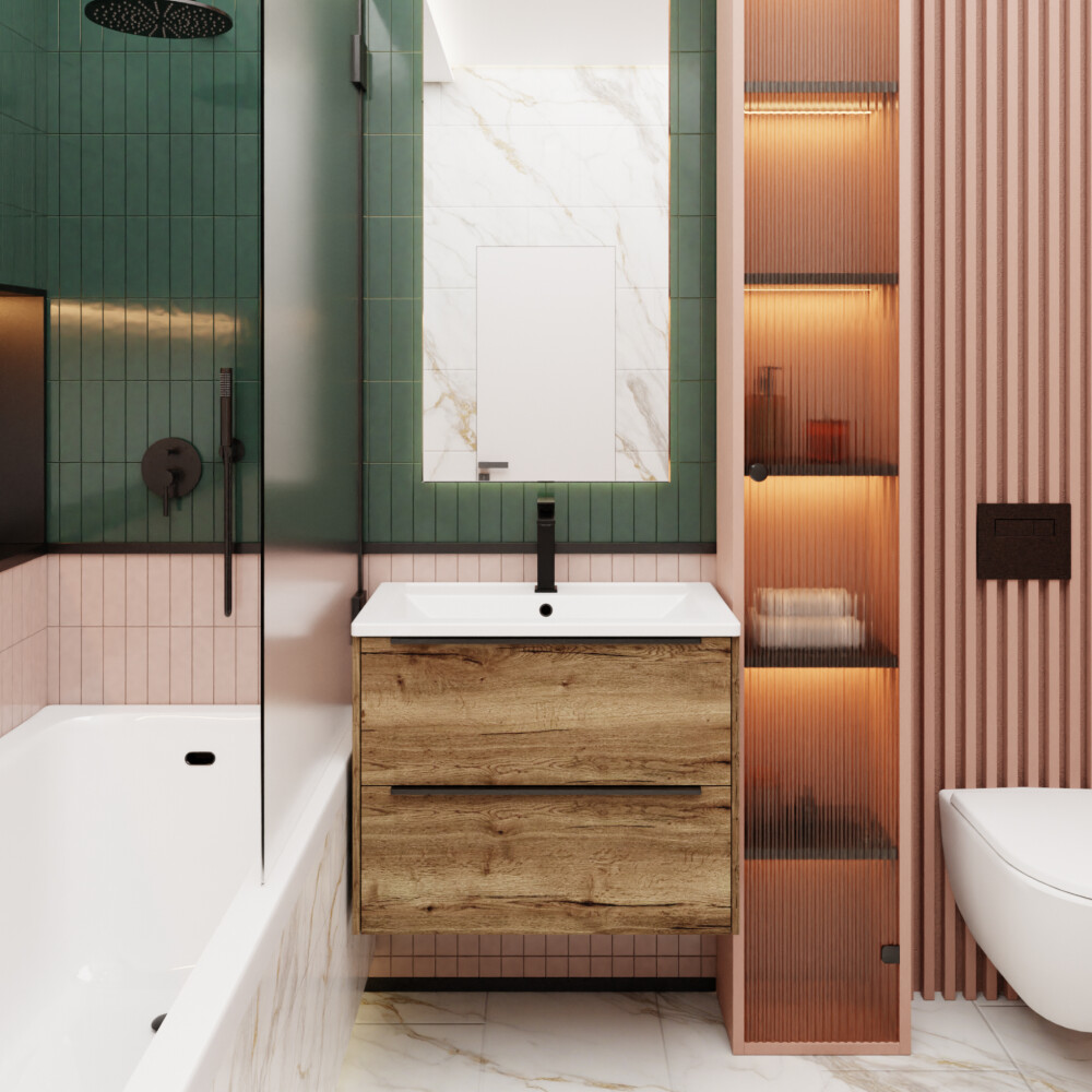 Идеальное сочетание стиля и функциональности. Качественные материалы и текстура натурального дерева придадут ванной комнате уют и элегантность. Продуманный дизайн делает пространство легким и приятным. Tesoro — ваш идеальный выбор для идеальной ванной комнаты.Скрытые доводчики SAMET (Турция) плавного закрывания частичного выдвижения, подвесной регулируемый механизм Camar (Италия)