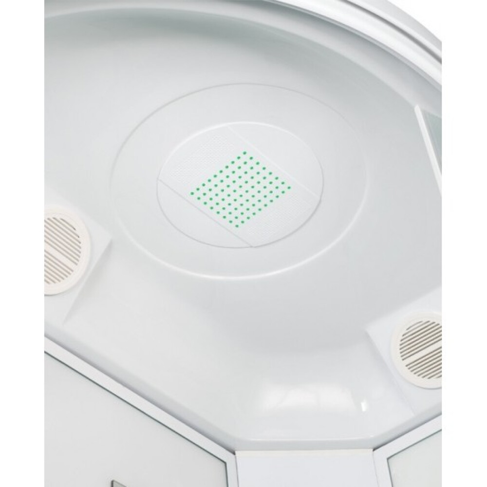 Правосторонняя душевая кабина Mirwell MR3512PR-C3 размером 120х80 см и высотой 215 см с крышей.Низкий поддон из акрила установлен на металлический каркас.Задние стенки выполнены из закаленного стекла белого цвета, передние стенки и дверцы - имеют матовую структуру.Снабжена стеклянной полочкой, зеркалом, качественным латунным смесителем для переключения холодной/горячей воды, верхним (тропическим) душем, лейкой ручного душа с держателем