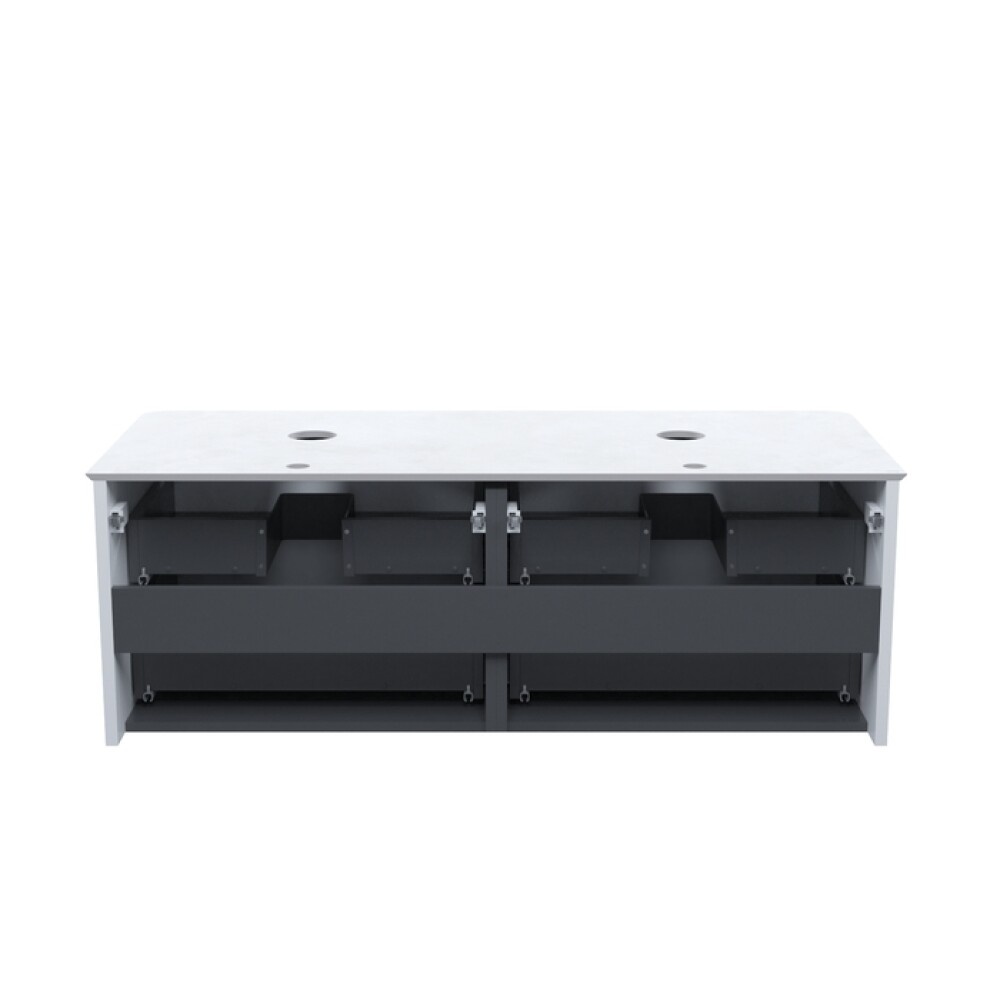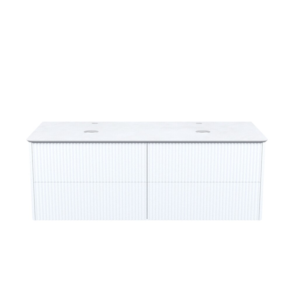 Большая подвесная тумба для ванной комнаты Aiger в классическом белом цвете с выдвижными ящиками и столешницей из керамогранита – красивый лаконичный дизайн вне времени с трендовой вертикальной фрезеровкой. • Влагостойкая матовая столешница из тонкого сверхпрочного керамогранита стильного цвета «светло-серый бетон» повторяет радиус скругления угла тумбы. Край филигранно запилен под 45 градусов и отполирован до глянцевого блеска – выглядит эстетично и при этом безопасен. Простая в монтаже – с готовыми отверстиями под смеситель и раковину. • Влагостойкие фасады и боковины из МДФ с покрытием ПВХ-пленкой с приятным тактильным эффектом soft touch прослужат долго. • Интегрированные фасады имеют скругление – выглядят красиво и безопасны для детей. • 4 вместительных ящика с внутренней отделкой в практичном графитовом цвете – стильный внешний вид и много места для хранения. Эргономичная пластиковая защита сифона. • Бесшумные направляющие для ящиков и надежные подвесы Hettich – высокое качество и беззаботная эксплуатация долгие годы. • Ящики мягко открываются за счет механизма Push-to-Open – удобные и легкие в повседневной эксплуатации. Открываются нажатием на фасад. • Сифон приобретается отдельно. Гарантия на мебель IDDIS® – 3 года, на столешницу – 3 года. (с) Авторский текст, октябрь 2024 г