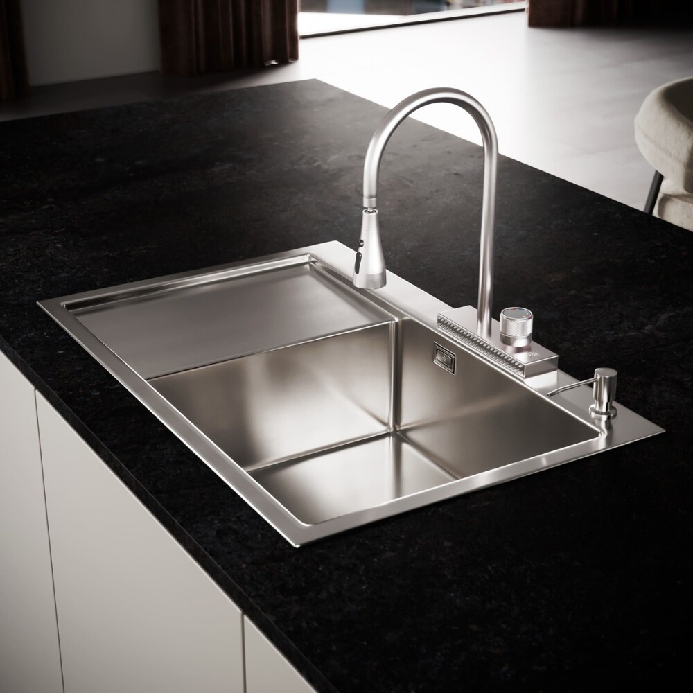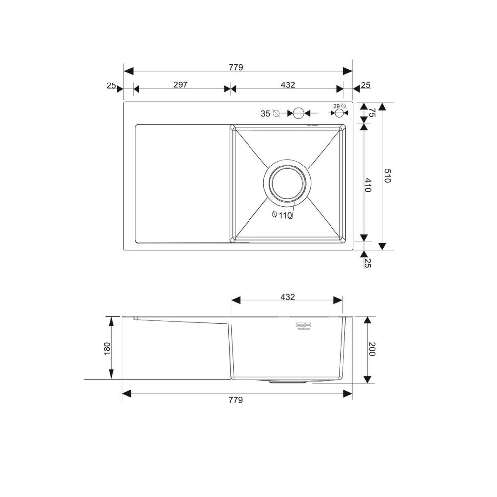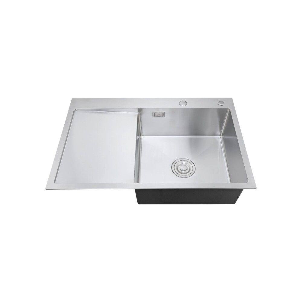 Набор 2 в 1 РМС (кухонная мойка с левым крылом, выполнена из премиальной нержавеющей стали + дозатор врезной). В комплекте: евросифон высокого качества. Металлические элементы изготовленны из нержавеющей стали. Гофра с универсальным выходом 40/50. Цвет: нержавеющая сталь. Размер: 779*509 мм. Глубина: 180 мм. Толщина: 1-3 мм