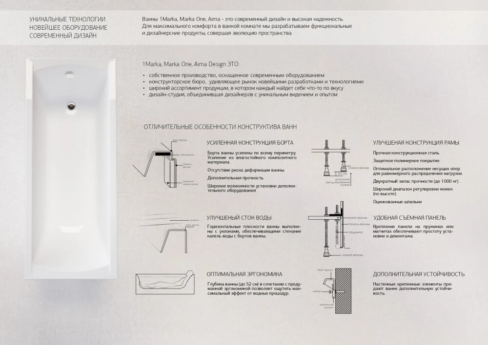 Прямоугольную акриловую ванну MODERN по праву можно назвать универсальной, подходящей для размещения абсолютно в любой ванной комнате. Она воплощает в себе эстетику минимализма, продуманную функциональность и стильную простоту. Это прекрасный вариант для тех, кто ищет оптимальное сочетание цены, качества и долговечности в ванной, которая максимально удобна для ежедневного использования всей семьей. Ванна представлена в размерах от 120 до 190 см, поэтому она актуальна как для совсем небольших, так и для просторных ванных комнат.К преимуществам данной модели можно отнести:- широкий размерный ряд - возможность подобрать понравившуюся модель под любой размер ванной комнаты;- универсальный дизайн - подойдет для любого интерьера ванной комнаты;- увеличенная купель - комфортное расположение тела в ванне;- гарантия 17 лет - качественный материал, который прослужит долго; Рама, панель, слив-перелив приобретаются отдельно