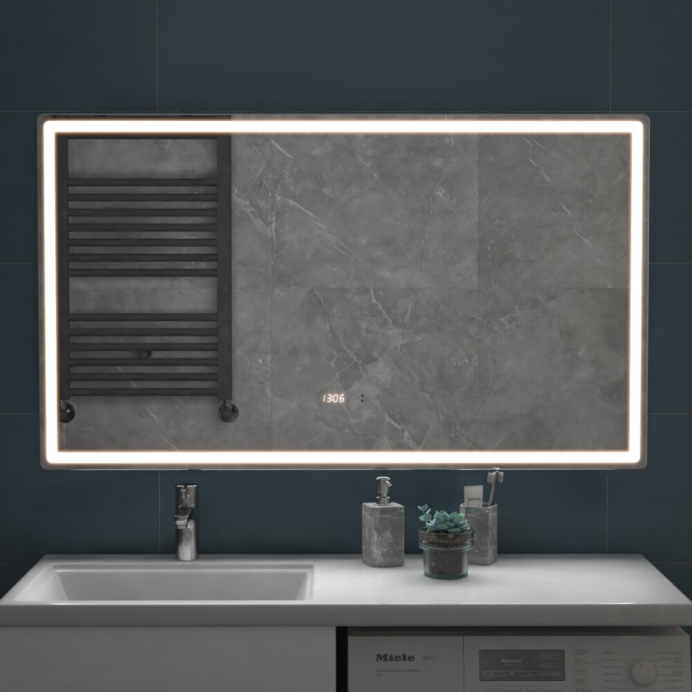 Стильное прямоугольное зеркало в ванную VIGO Geometry Luxe 1200x700 мм с инновационной бесконтактной подсветкой на взмах руки. Это зеркало премиум-класса оснащено всем необходимым: умная LED-подсветка с диммером для регулировки яркости, функция антизапотевания, встроенные часы и датчик температуры. Современный беспроводной дизайн и лаконичная прямоугольная форма 80х70 см идеально впишутся в интерьер вашей ванной комнаты. Управляйте светом и обогревом одним взмахом! Надежная защита от влаги обеспечивает долгий срок службы.