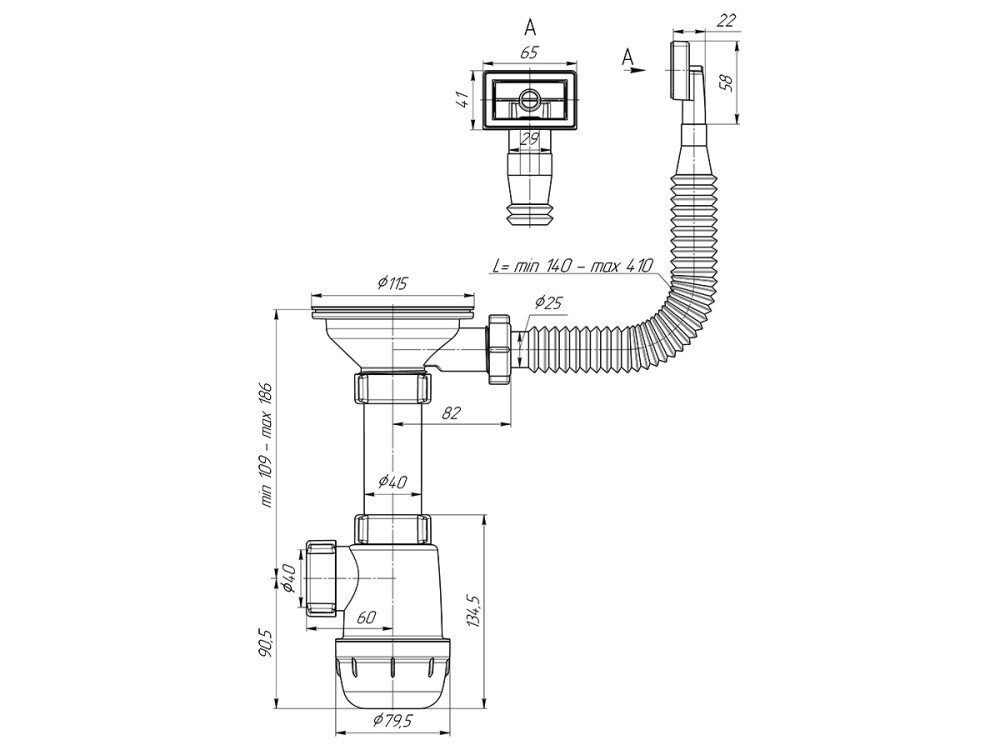 • Сифон сливной АНИ пласт A0145S для кухонных моек с диаметром сливного отверстия 90-98 мм• Тип сифона: бутылочный, с увеличенным корпусом• Выпуск: разборный, с нержавеющей решеткой• Решетка слива: Ø115мм при выпуске 3½• Высота гидрозатвора: 60 мм• С гибким прямоугольным переливом. Корпус перелива оборудован универсальной прокладкой для круглых и прямоугольных моек, нужная сторона прокладки достигается путем переворота.• Отводы для стиральной и посудомоечной машины: нет• Выход для подключения к канализации 40мм.• Высота: 105-185 ммФорма сифона позволяет поддерживать хорошую пропускную способность слива сточной воды, выполняя свою главную функцию - формирование гидрозатвора для отсечения неприятных запахов из канализации. Конструкция позволяет легко, без демонтажа, снять отстойник (стакан) и почистить сифон в случае засорения, достать случайно упавшие в слив раковины мелкие ценные вещи. Сифон прост в установке. Комплектация: сифон с прямоугольным гибким переливом, упаковка
