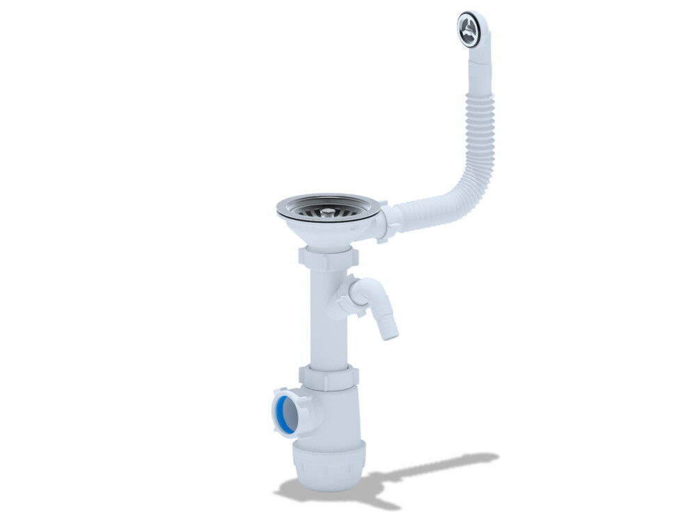 Сифон бутылочного типа для кухонной мойки с увеличенным корпусом. Сифоны группы «А» - «Ани Грот». Сифон A1042S с разборным выпуском и нержавеющей решеткой, с отводом для подключения бытовой техники. С гибким круглым переливом для моек из композитных материалов. Выход для подключения к канализации 40мм. Величина гидрозатвора 60мм. Длина винта 40мм. Комплектация A1042S: Выпуск 3½” (90мм); Гибкий круглый перелив; Один отвод для подключения бытовой техники