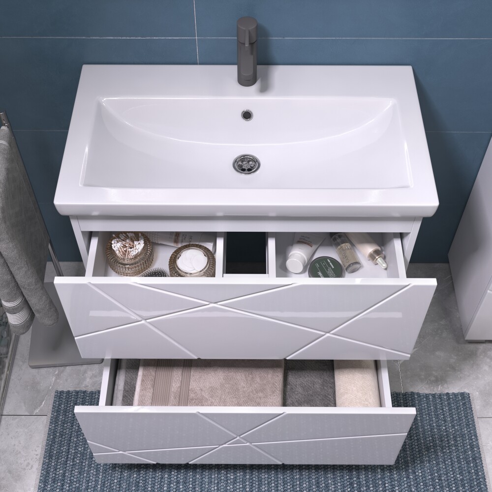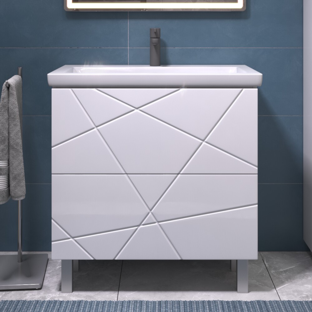 Современная тумба под раковину Geometry 800-0-2 (Como) — элегантное и функциональное решение для вашей ванной комнаты. Напольная тумба с размерами 766×440×800 мм изготовлена из качественных материалов: корпус из ЛДСП, фасады из ЛМДФ с глянцевым покрытием ПВХ. Модель оснащена двумя вместительными выдвижными ящиками с направляющими скрытого монтажа и современной системой открывания push-to-open. Регулируемые опоры обеспечивают устойчивость на любом полу. Стильный дизайн коллекции Geometry идеально дополнит интерьер ванной.