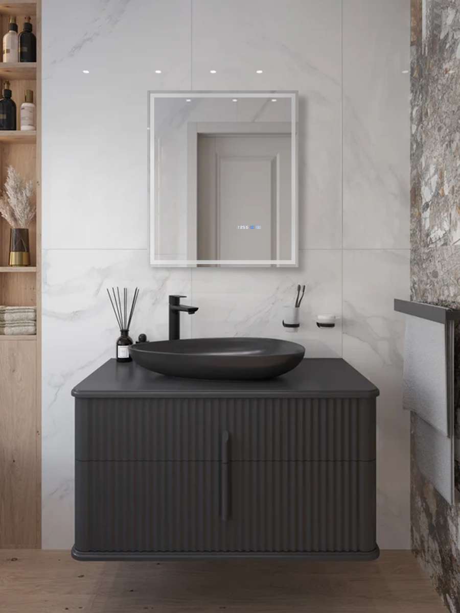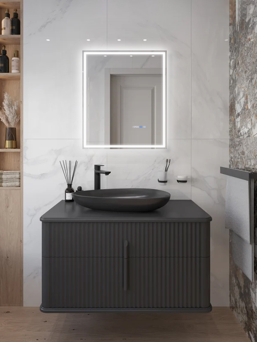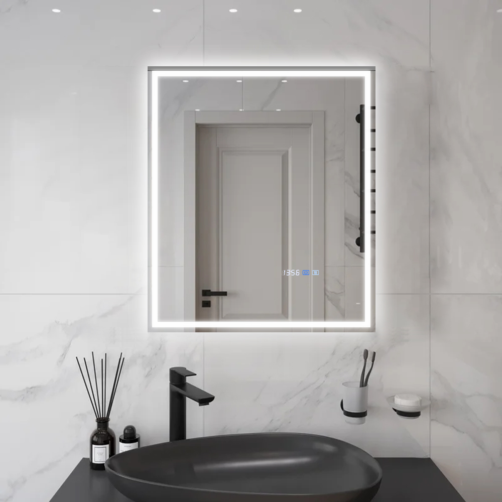 Стильное и функциональное зеркало в ванную Monterey Аделия 60x70 с LED-подсветкой холодного света и функцией подогрева. Это современное зеркало с антизапотеванием идеально подойдет для вашей ванной комнаты. Уникальная особенность модели — боковая и фронтальная LED подсветка благодаря светопропускному пластику корпуса, создающая равномерное освещение. Сенсорное управление на касание позволяет легко управлять подсветкой, регулировать яркость через диммер, включать функцию термообогрева и настраивать часы. Больше не нужно протирать зеркало после душа! Зеркальное полотно без рамы с подвесным монтажом выглядит минималистично и элегантно. Доступно в размерах 60, 70, 80 и 100 см.