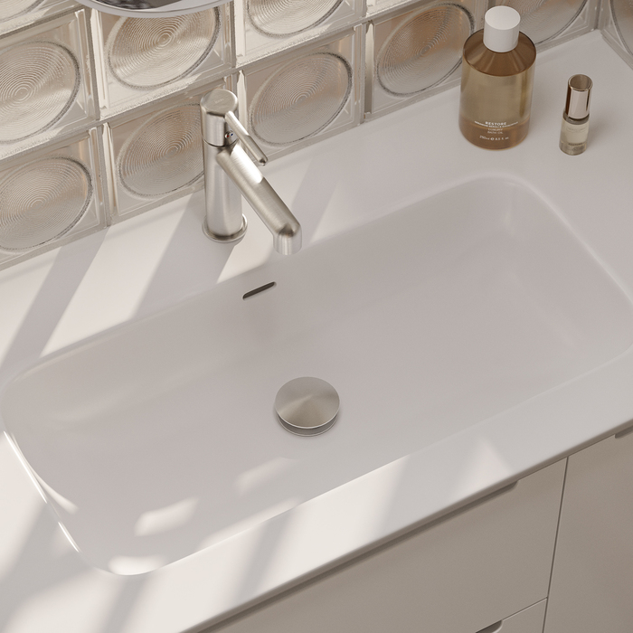 Выпуск Slide в стильном оттенке матового хрома предназначен для умывальника с переливом и сделает его вид более эстетичным.
