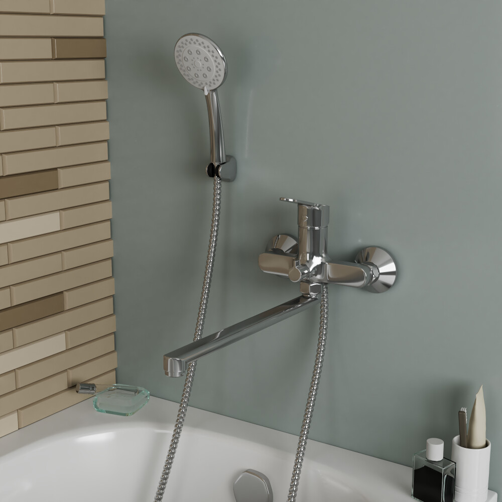 Смеситель для ванны RUSH арт.SK5720-51 с поворотным изливом из коллекции Sky изготовлен из высококачественной латуни и имеет рычажное управление. Излив изготовлен из нержавеющей стали В смеситель установлен картридж D-35 с керамическими пластинами, а также дивертор с керамическими пластинами. Пластиковый аэратор с нержавеющим корпусом. Излив поворотный 403мм. В комплекте универсальная присоединительная группа для установки на вертикальную поверхность, 5-режимная душевая лейка и душевой шланг длиной 1,5м., держатель душевой лейки, эксцентрики, индивидуальный пакет, паспорт, гарантийный талон