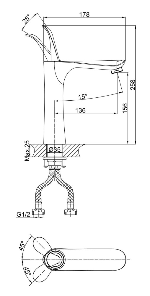 - Гибкая подводка 40 см идёт в комплекте для быстрой установки