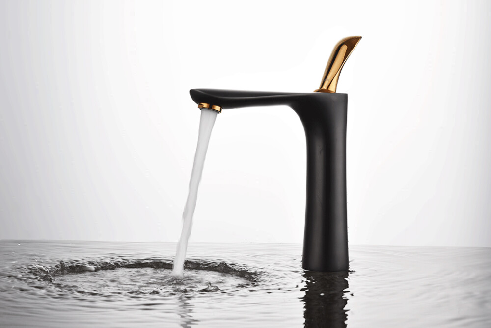 Правильная геометрия, идеальный пример минимализма и современного дизайна в ярком сочетании черного и золотого цветов для ванной комнаты.