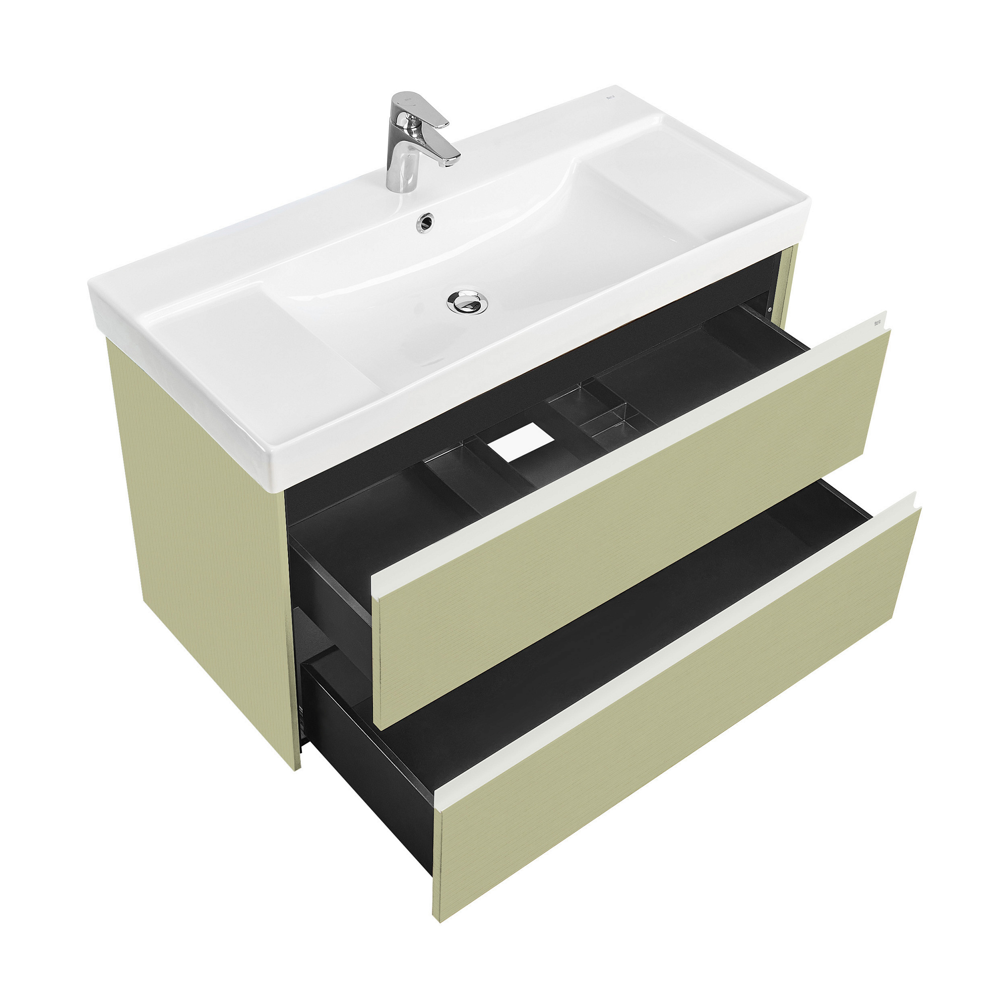 Описание коллекции Погрузитесь в атмосферу Средиземноморья в вашей ванной комнате вместе с коллекцией Ona. Внутри коллекции Ona теперь есть лимитированная серия Ona Ivory и Ona Olive. Пленка, применяемая в данных коллекиях имеет ребристую тактильно приятную поверхность. Волнистый рельеф мебели создаёт ощущение движения и гармонии с природой: рябь на воде или отпечатки ветра на песчаных просторах. Цвета натуральных оттенков, такие как оливковый и слоновая кость, напоминают о бархатистом песке и молодой зелени, а их тёплые оттенки создают уютную атмосферу. Влагостойкие материалы и пленки от европейских производителей – это красота, долговечность и безупречный вид мебели на долгие годы. Описание товара Модули Ona обладают следующими характеристиками и преимуществами. Удобная металлическая профильная ручка во всю ширину модуля обеспечивает легкость открывания ящиков и защиту фасадов от влаги, ударов и износа. В обоих ящиках находятся противоскользящие коврики, а верхний ящик снабжен также встроенной организацией пространства – эстетика и идеальный порядок в ванной комнате. Комфортное и долговременное использование мебели гарантировано благодаря направляющим Hettich полного выдвижения и плавного открывания и закрывания, протестированных на 60 000 циклов. Навесы входят в комплект и выдерживают нагрузку 100 кг, а также обладают функцией регулировки, которая позволяет скомпенсировать неровность стен и установить мебель ровно. Модули Ona комплектуются раковинами Ona из долговечного композитного материала