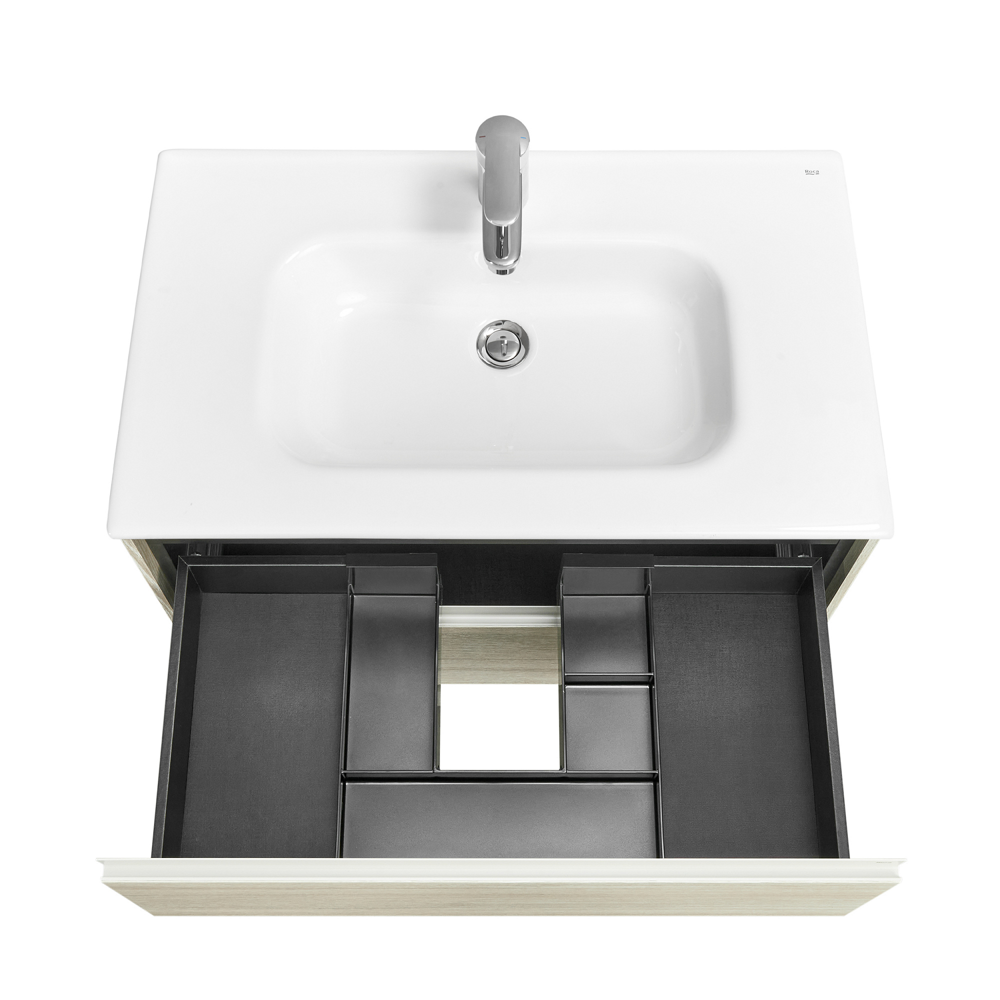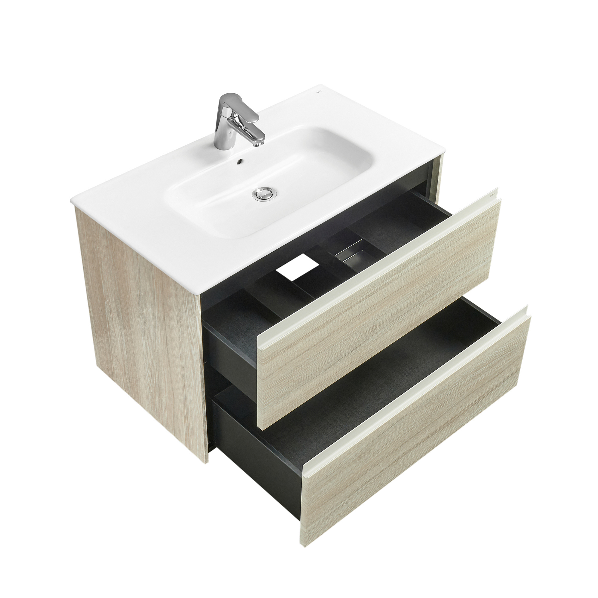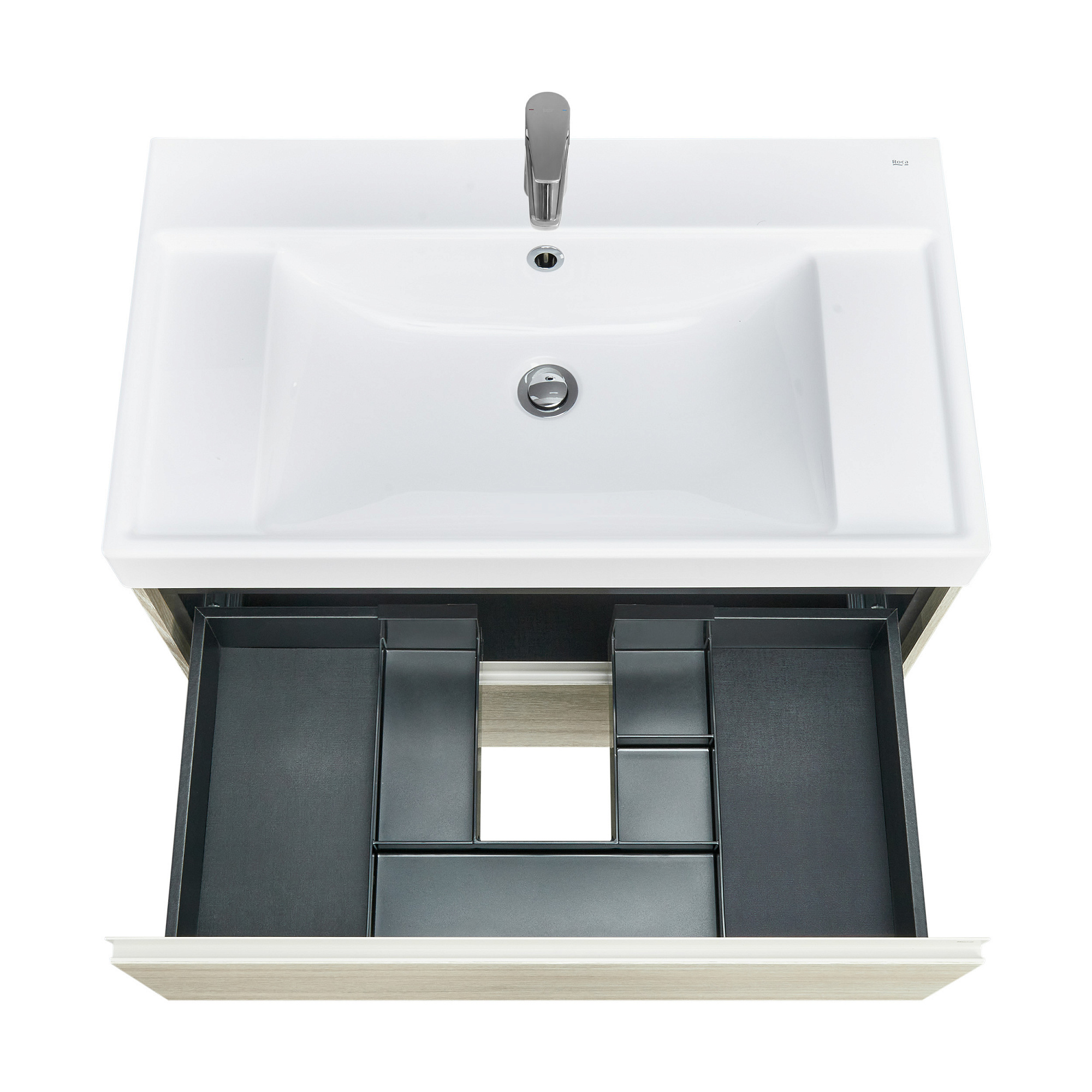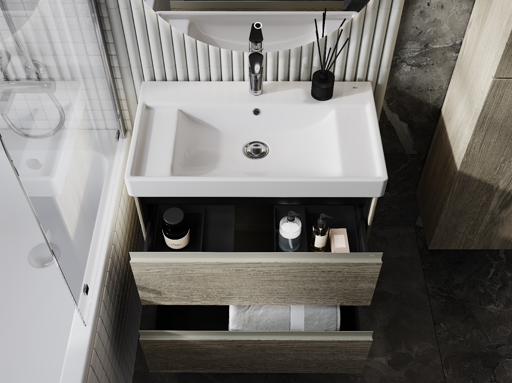 Описание коллекции Погрузитесь в атмосферу Средиземноморья в вашей ванной комнате вместе с коллекцией Ona. Влагостойкие материалы и пленки от европейских производителей – это красота, долговечность и безупречный вид мебели на долгие годы. Описание товара Модули Ona обладают следующими характеристиками и преимуществами. Удобная металлическая профильная ручка во всю ширину модуля обеспечивает легкость открывания ящиков и защиту фасадов от влаги, ударов и износа. В обоих ящиках находятся противоскользящие коврики, а верхний ящик снабжен также встроенной организацией пространства – эстетика и идеальный порядок в ванной комнате. Комфортное и долговременное использование мебели гарантировано благодаря направляющим Hettich полного выдвижения и плавного открывания и закрывания, протестированных на 60 000 циклов. Навесы входят в комплект и выдерживают нагрузку 100 кг, а также обладают функцией регулировки, которая позволяет скомпенсировать неровность стен и установить мебель ровно. Модули Ona комплектуются раковинами Ona из долговечного композитного материала