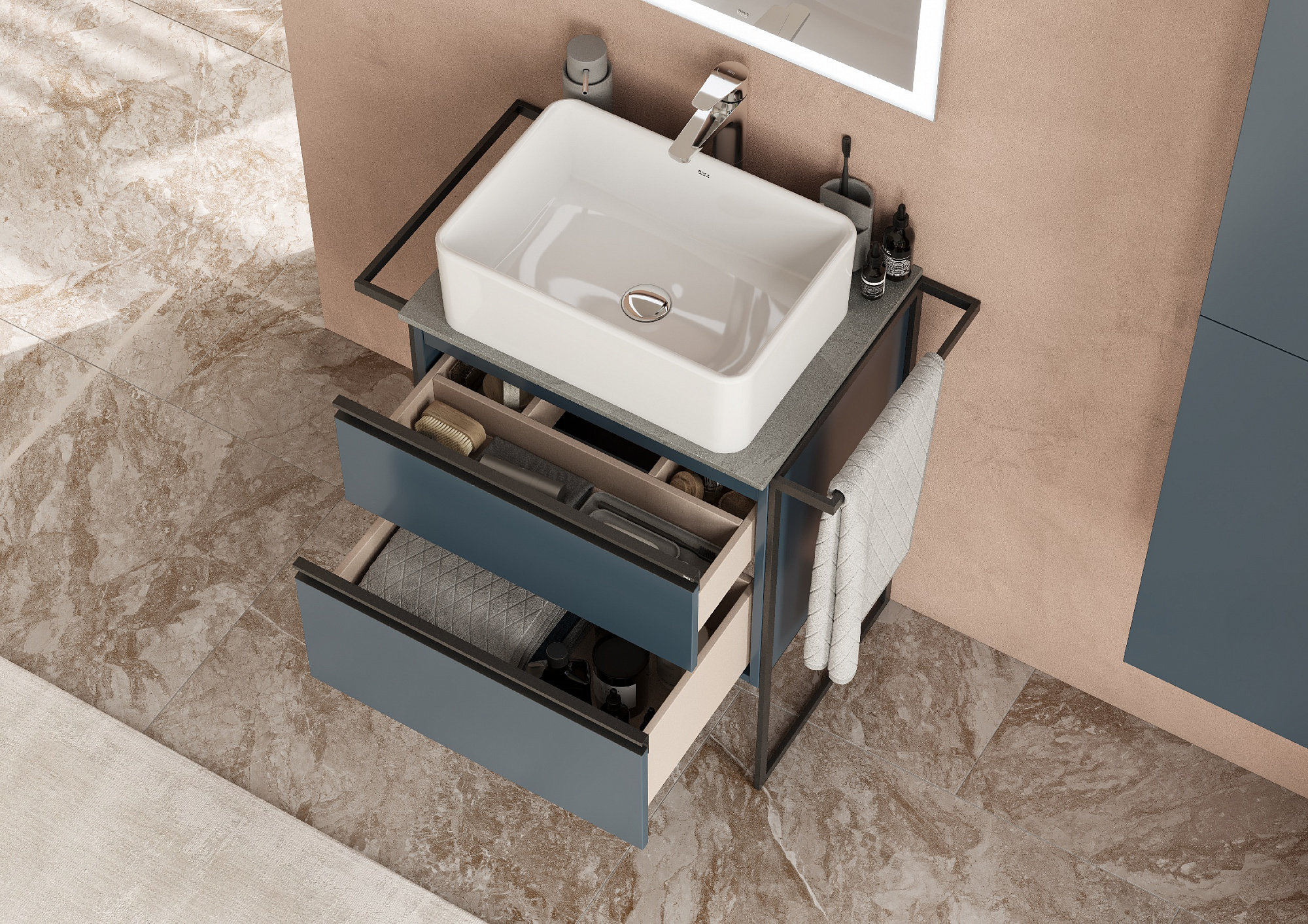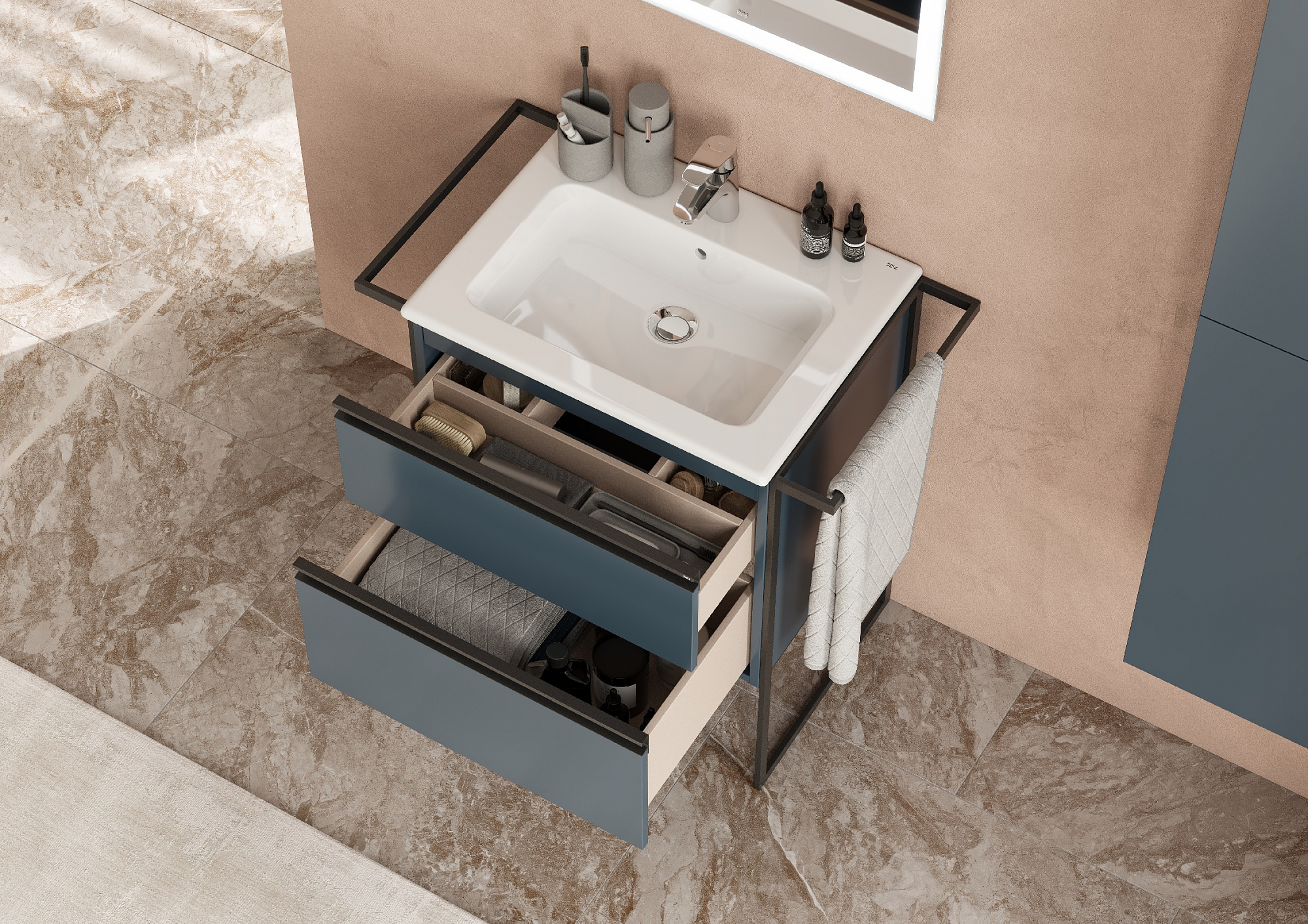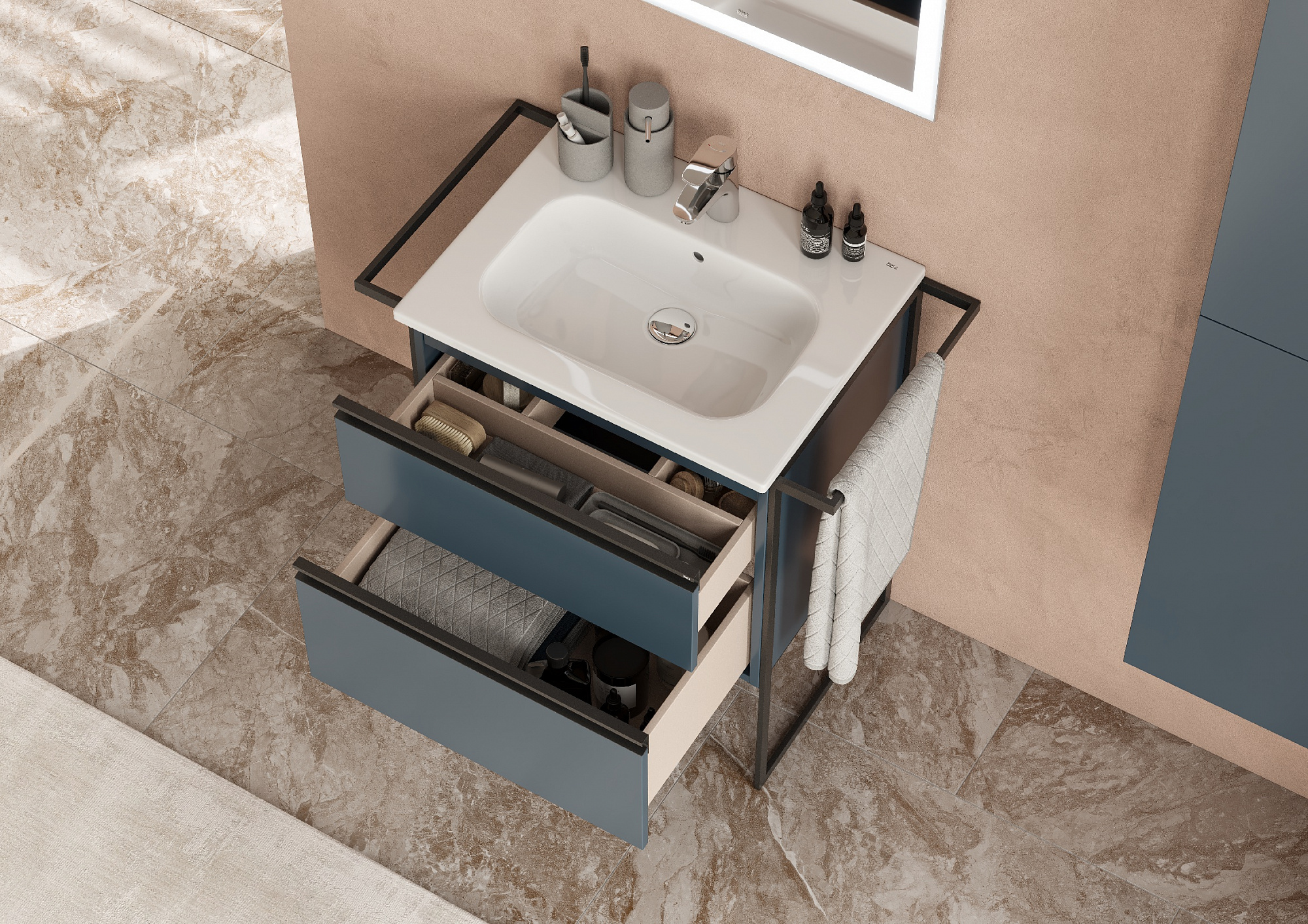 Тумба под раковину Roca Domi 80 2 ящика синий матовый ZRU9307868