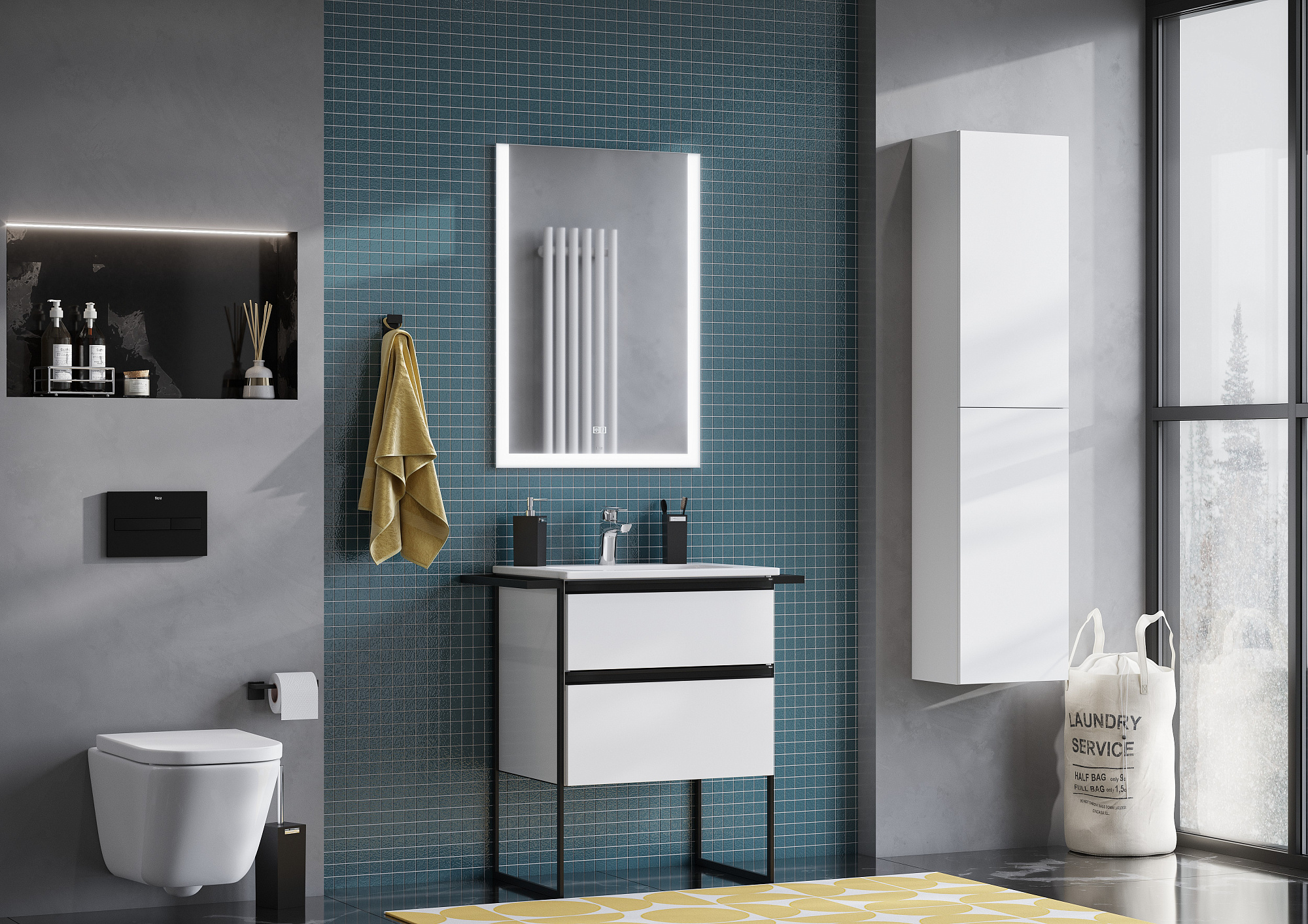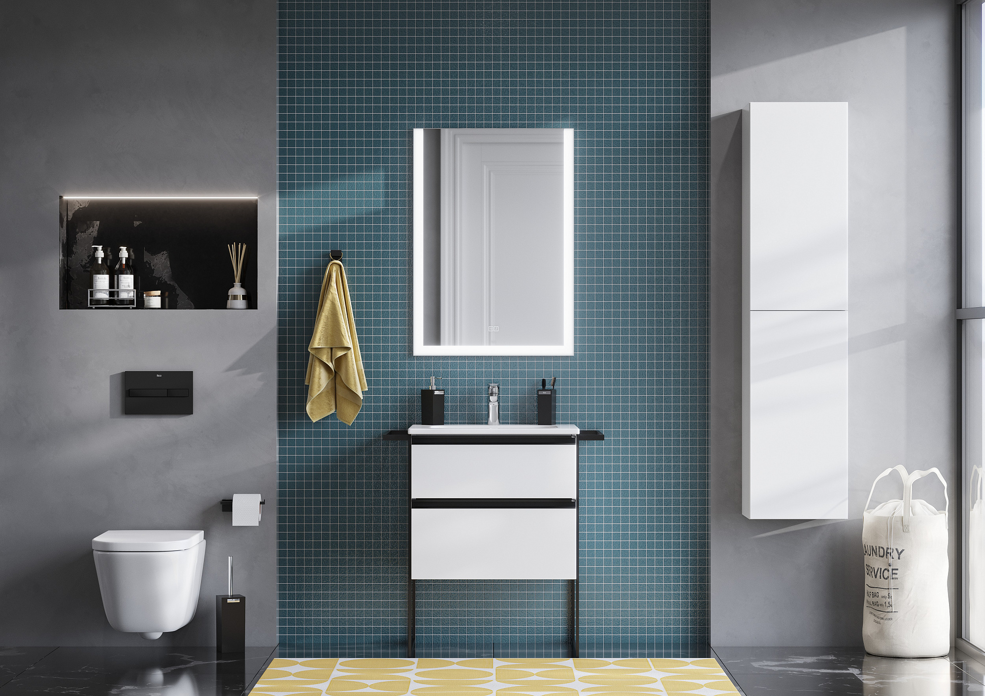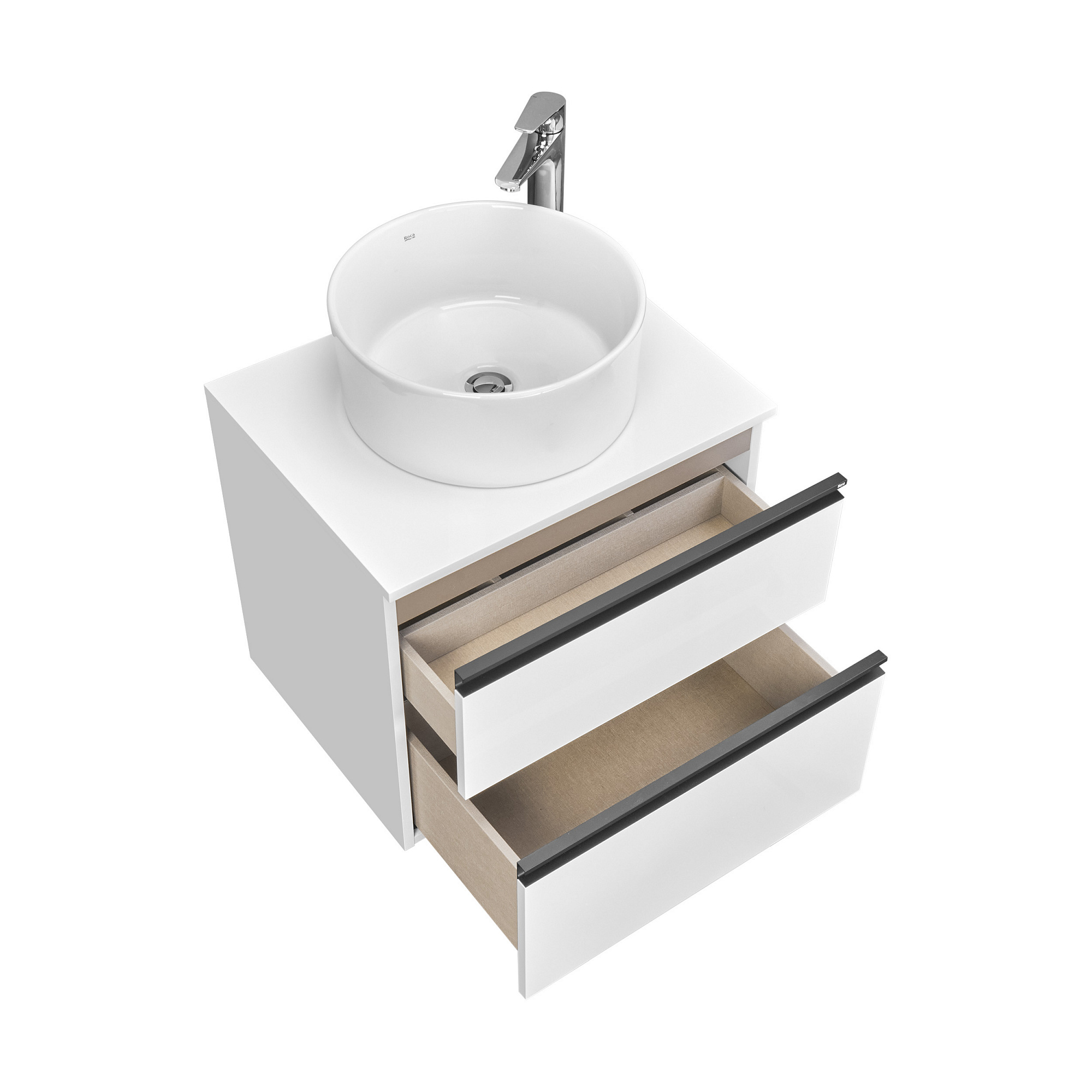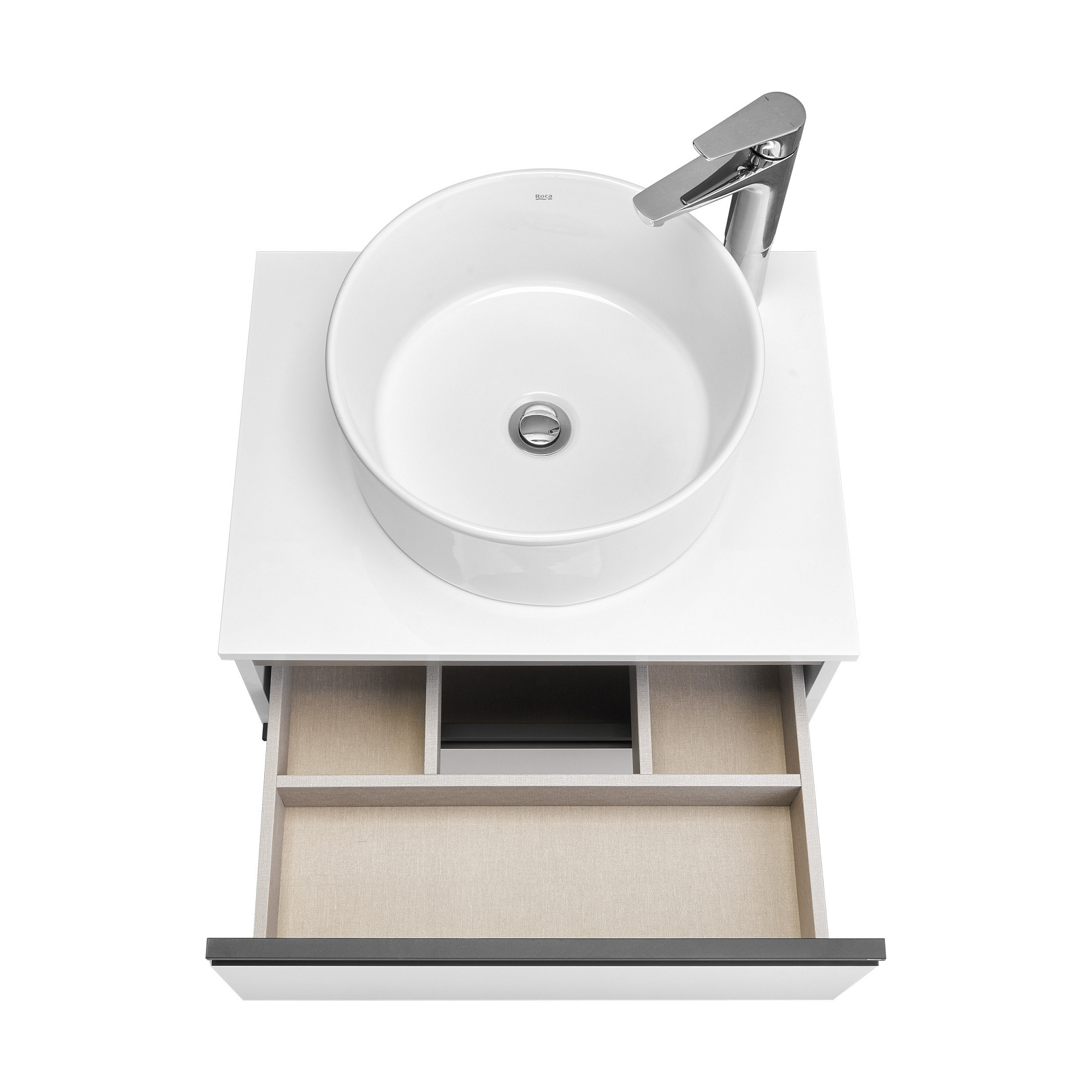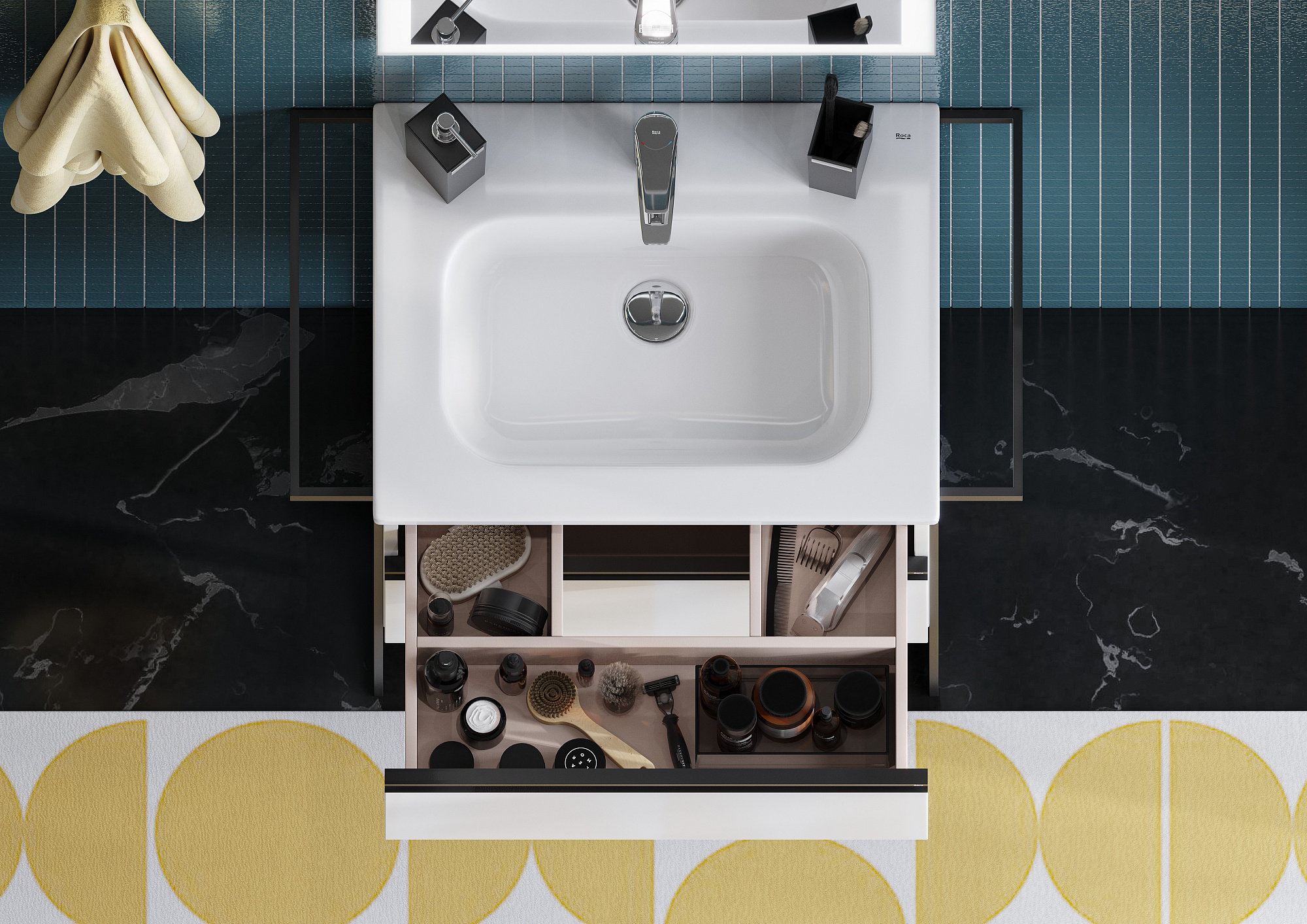 Модуль под раковину DOMI с черной матовой металлической удобной ручкой во всю ширину профиля и направляющими с функцией soft-close. Нижняя часть ручки обработана под углом, что предотвращает скопление воды и пыли. Ручка защищает фасады модуля от попадания капель воды с раковины, а также защищает углы модуля от ударов и износа. Внутренняя отделка ящиков выполнена в цвете бежевый текстиль, приятна на ощупь и предотвращает скольжение предметов. Пространство верхнего ящика разделено на три части, что позволяет хранить предметы для ванной комнаты в идеальном порядке. По желанию клиента модуль DOMI может комплектоваться черными матовыми опорами, которые представлены в двух вариантах: с полотенцедержателем и без. С помощью опор и аксессуаров в черном цвете (Rubik, Tempo, Ice) можно расставить четкие акценты в интерьере и создать ванную комнату в стиле лофт. Новый артикул, аналог 857532806