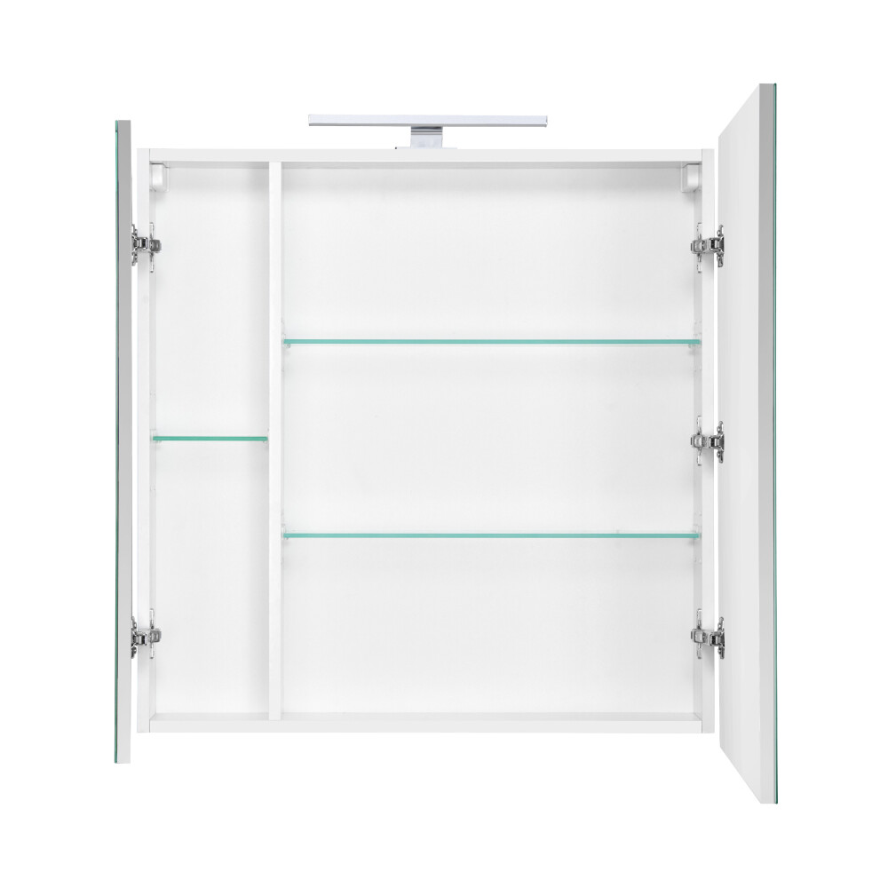 Навесы-2 шт.. створки c зеркалом -2 шт. петли с доводом (петли с интегрированной системой плавного закрывания) - 5 шт.. стеклянные полки - 3 шт.. светильник