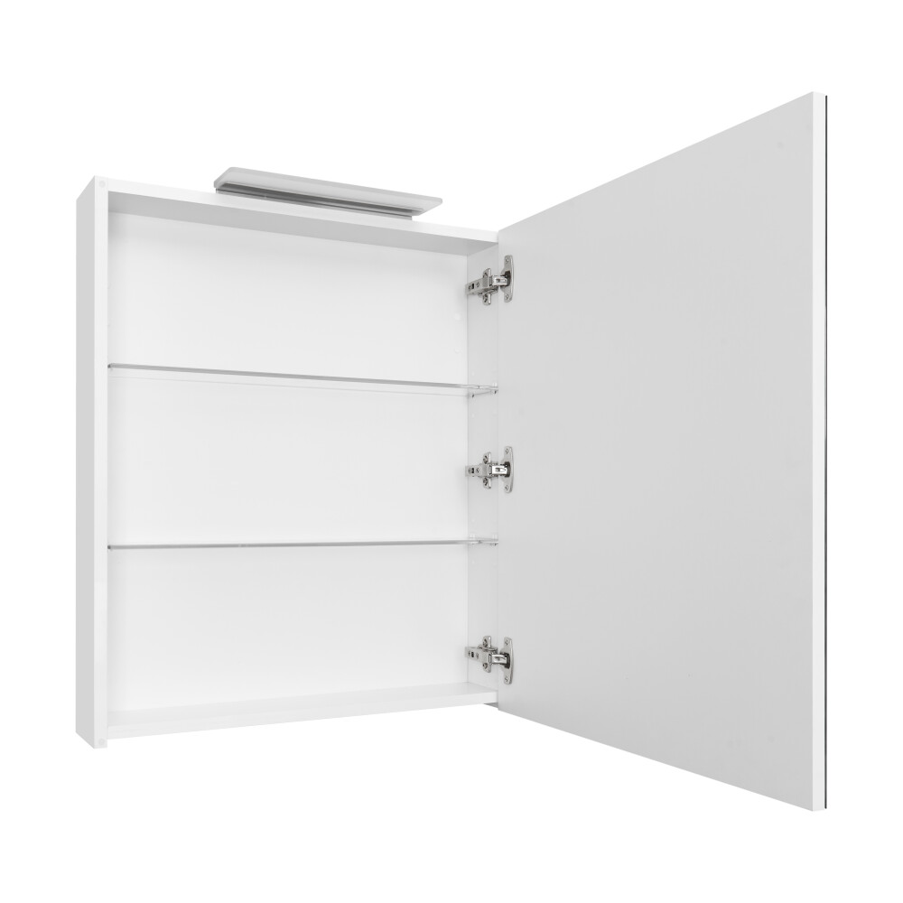 Зеркальный шкаф OLETA оснащен светильником от европейского бренда с возможностью регулировки положения, IP 44, 5 700 K. Теплота света у светильника 5 700 K - это яркий свет, идеальный для нанесения макияжа и бритья. Положение светильника можно регулировать: наклонить слегка вниз или направить свет повыше. За зеркальными фасадами расположены регулируемые по высоте полочки из просветленного стекла. Фасады оснащены петлями с плавным закрыванием