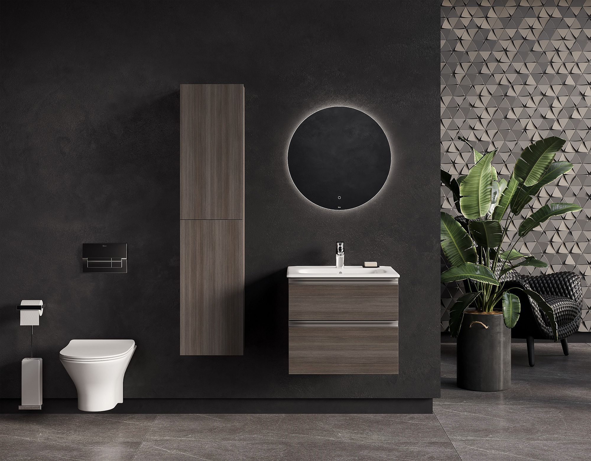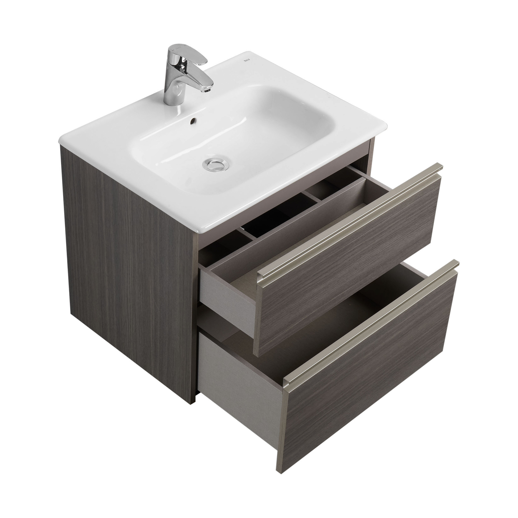 Модуль под раковину THE GAP в темном древесном декоре обладает универсальным современным дизайном и функциональностью. Корпус и фасады выполнены из влагостойкой ЛДСП в древесном декоре. Металлическая ручка во всю ширину модуля удобна в использовании и вместе с направляющими с функцией silent system делают процесс открывания ящиков легким и приятным. Нижняя часть ручки обработана под углом, что предотвращает скопление воды и пыли. Ручка защищает фасады модуля от попадания капель воды с раковины, а также защищает углы модуля от ударов и износа. Внутренняя отделка ящиков выполнена в цвете бежевый текстиль, приятна на ощупь и предотвращает скольжение предметов. Пространство верхнего ящика разделено на три части, что позволяет хранить предметы для ванной комнаты в идеальном порядке. Благодаря универсальному дизайну модули под раковину THE GAP могут сочетаться с различными вариантами зеркал и зеркальных шкафов из коллекций THE GAP ORIGINAL, ANETO, VICTORIA NORD и VICTORIA. Сифон для раковины приобретается отдельно
