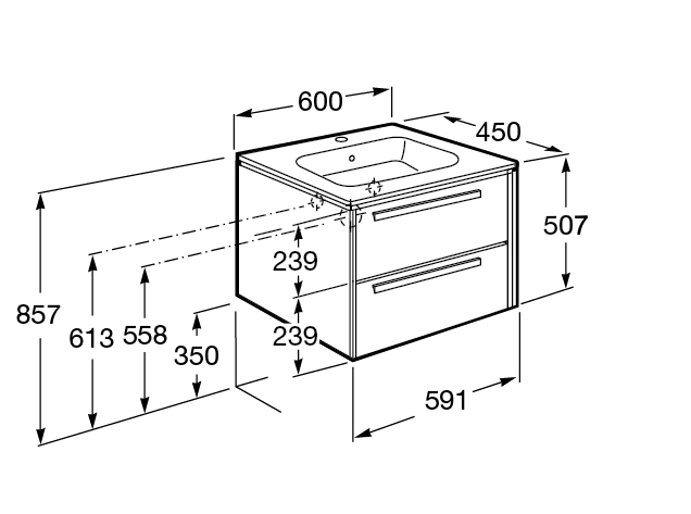 LAGO модуль для раковины 600 мм, 591x448x490 мм, с 2 ящиками, белый глянец