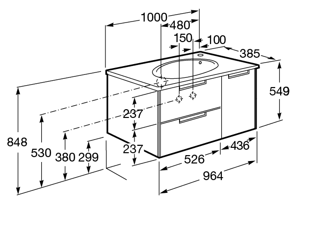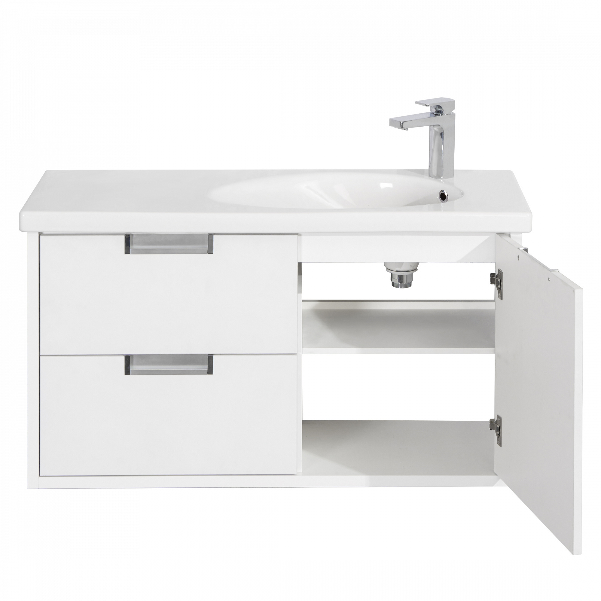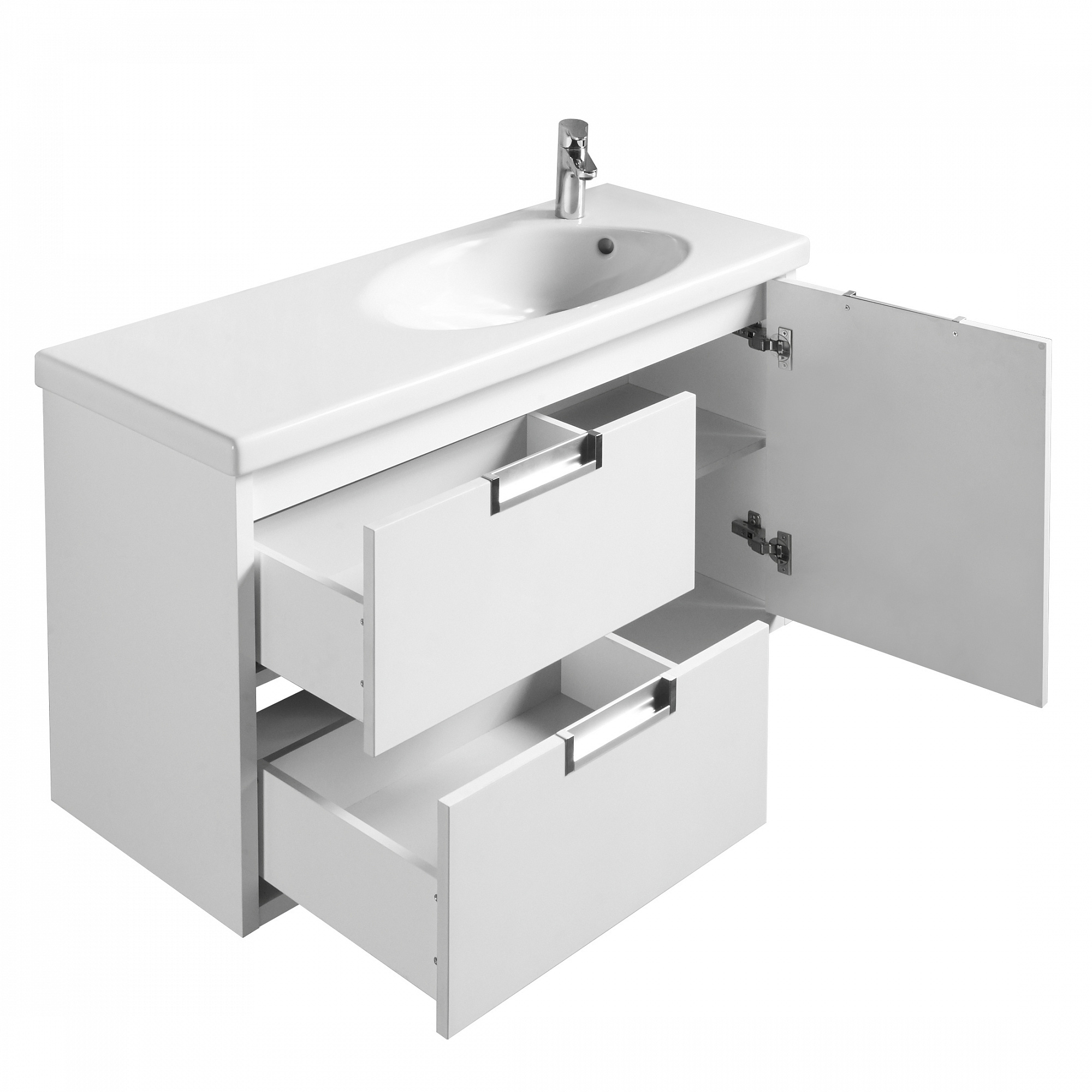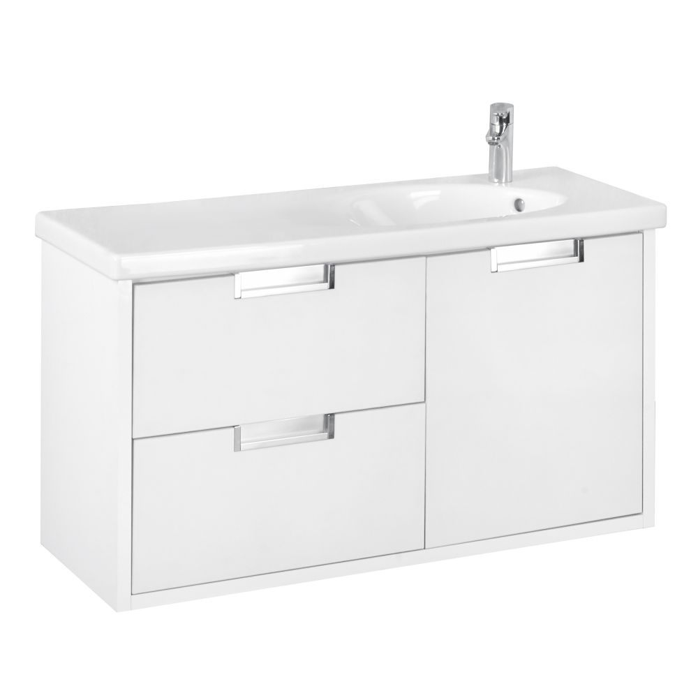 Тумба для раковины Etna в современном стиле от испанского бренда Roca, выполненная из влагостойкой высококачественной ЛДСП и МДФ с ящиками и распашной дверцей с доводчиками